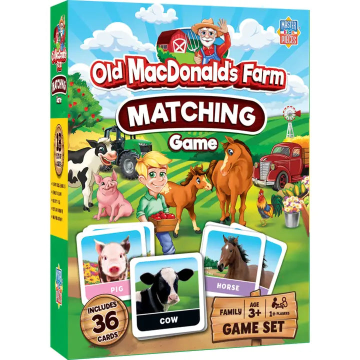 If you're looking for a fun, family game night activity, look no further than the Old MacDonald's Farm Matching Game by MasterPieces. This game includes 18 matching pairs of unique symbols, perfect for children and adults ages 3 and up. The object of the game is to collect the most matches by the end of the game. So put your memory to the test and have some fun!