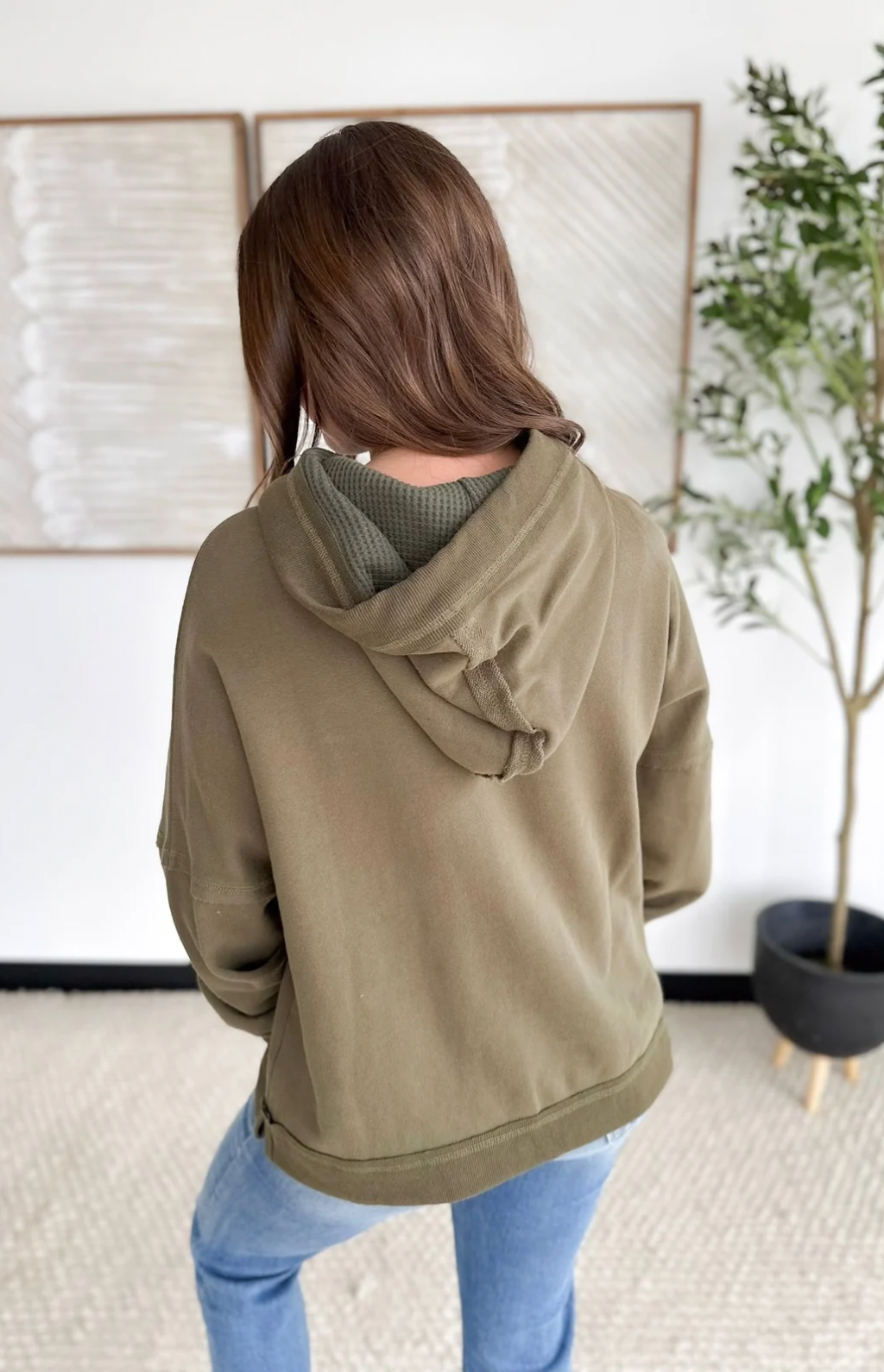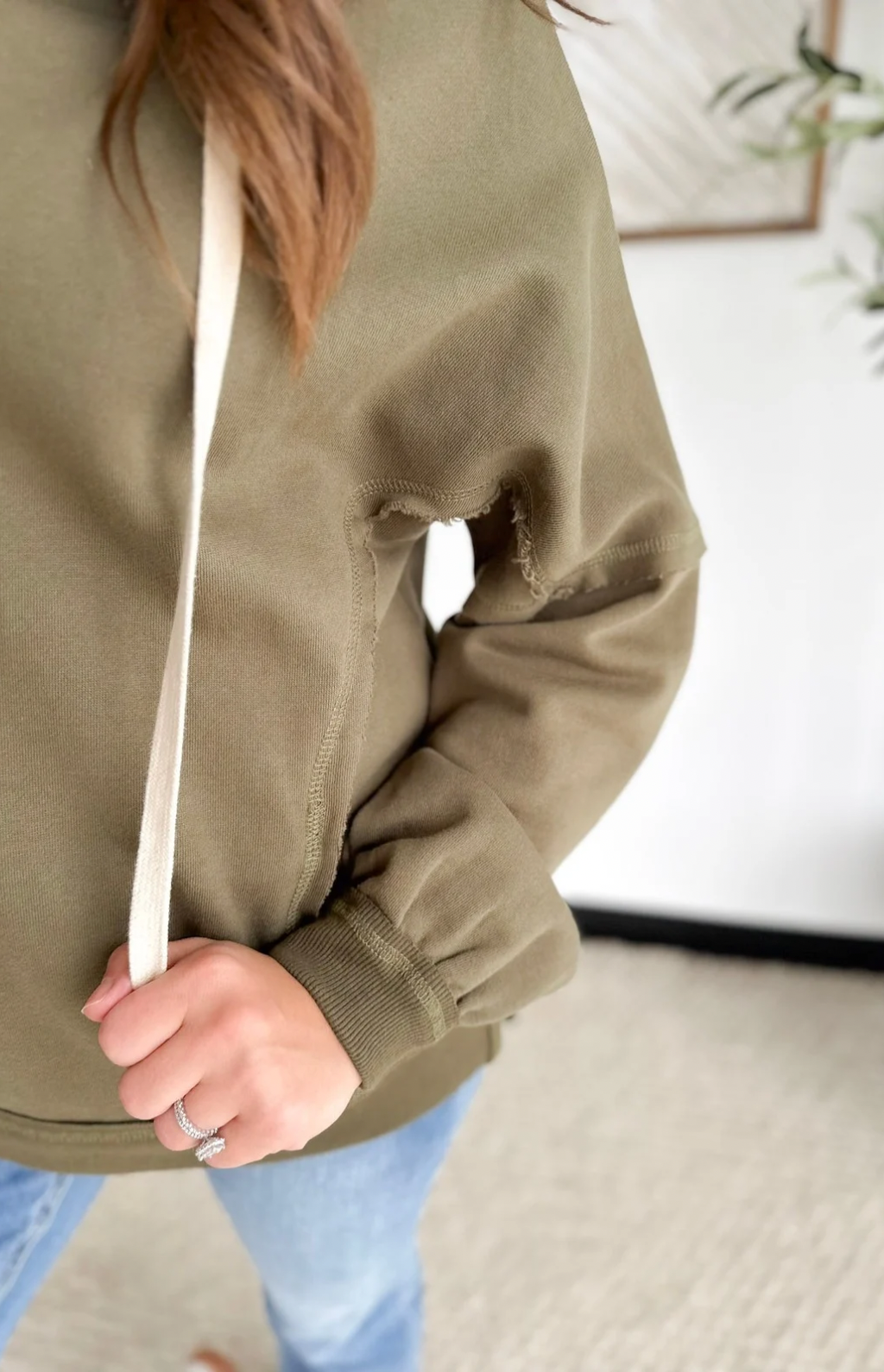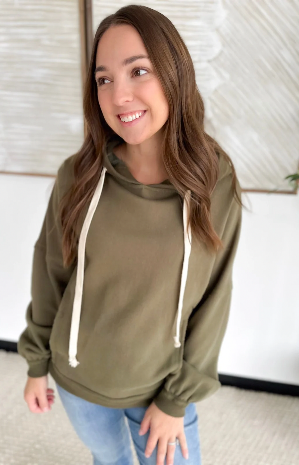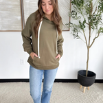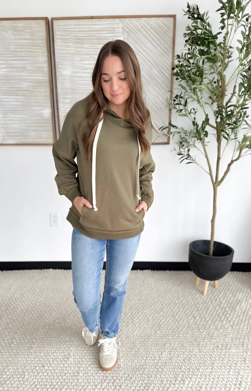 This olive pullover is the perfect blend of casual comfort and everyday style. The soft, cozy fabric keeps you warm, while the hooded detail adds a relaxed, sporty touch. Its relaxed fit makes it easy to layer over tees or wear on its own, perfect for errands, lounging, or casual outings. Neutral, versatile, and effortlessly stylish, this pullover is a go-to piece for your everyday wardrobe.