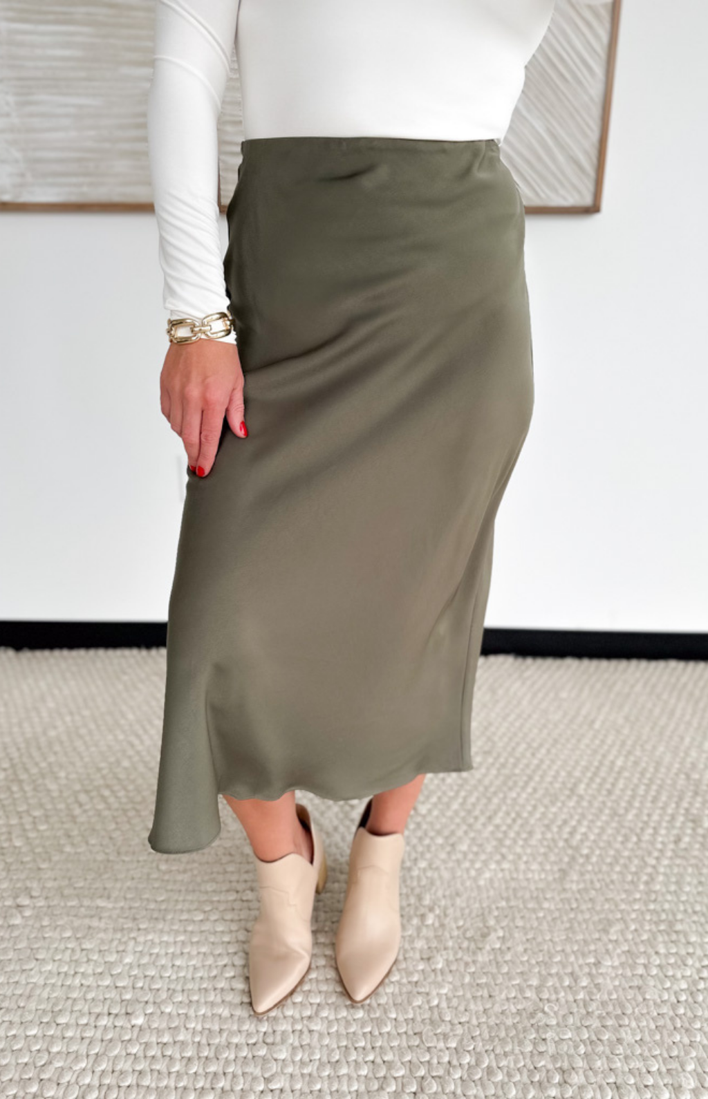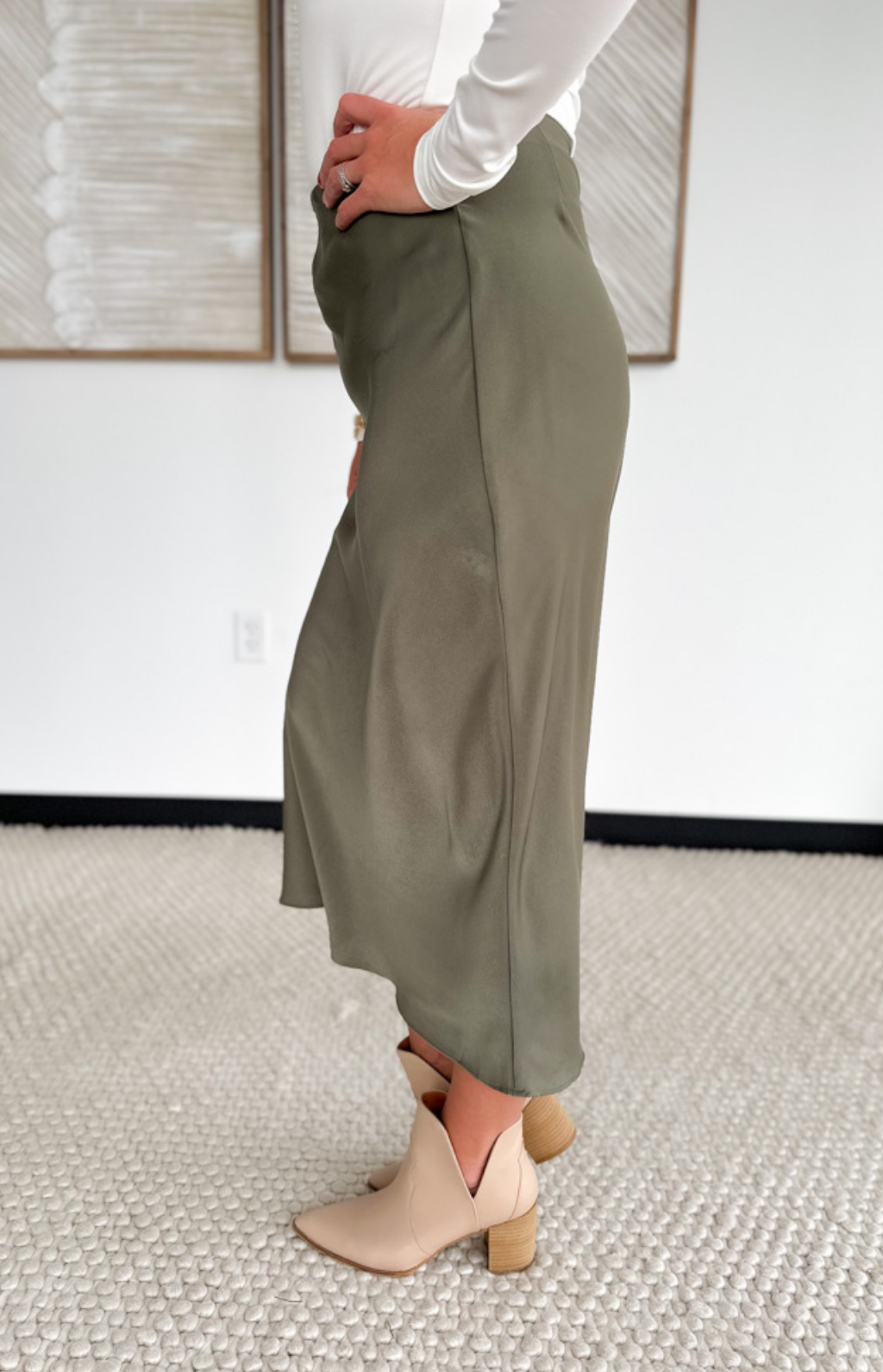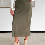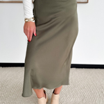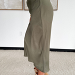 Olive Satin Maxi Skirt