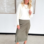 This olive satin maxi skirt is where comfort meets sophistication. The soft, flowy satin drapes beautifully for a flattering, feminine look, while the elastic waistband makes it an easy, pull-on style you’ll love. The rich olive color adds a touch of warmth and elegance, perfect for both casual days and dressed-up nights. Pair it with a fitted top or an oversized sweater for that effortlessly chic, ready-for-anything vibe.
