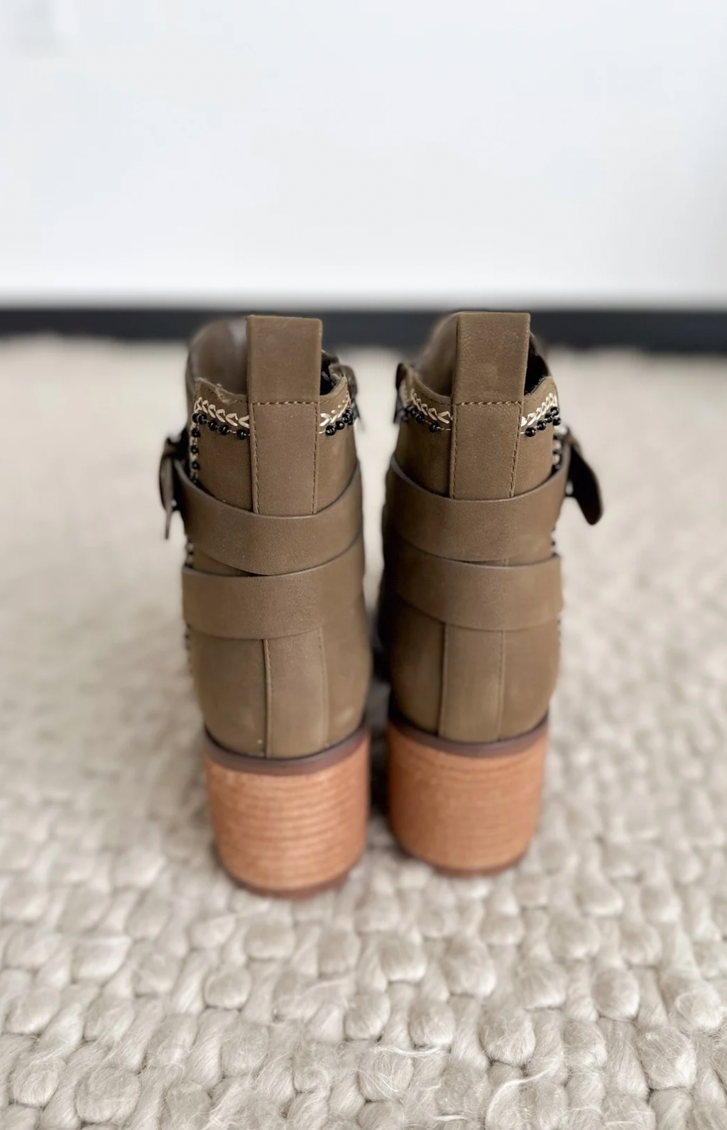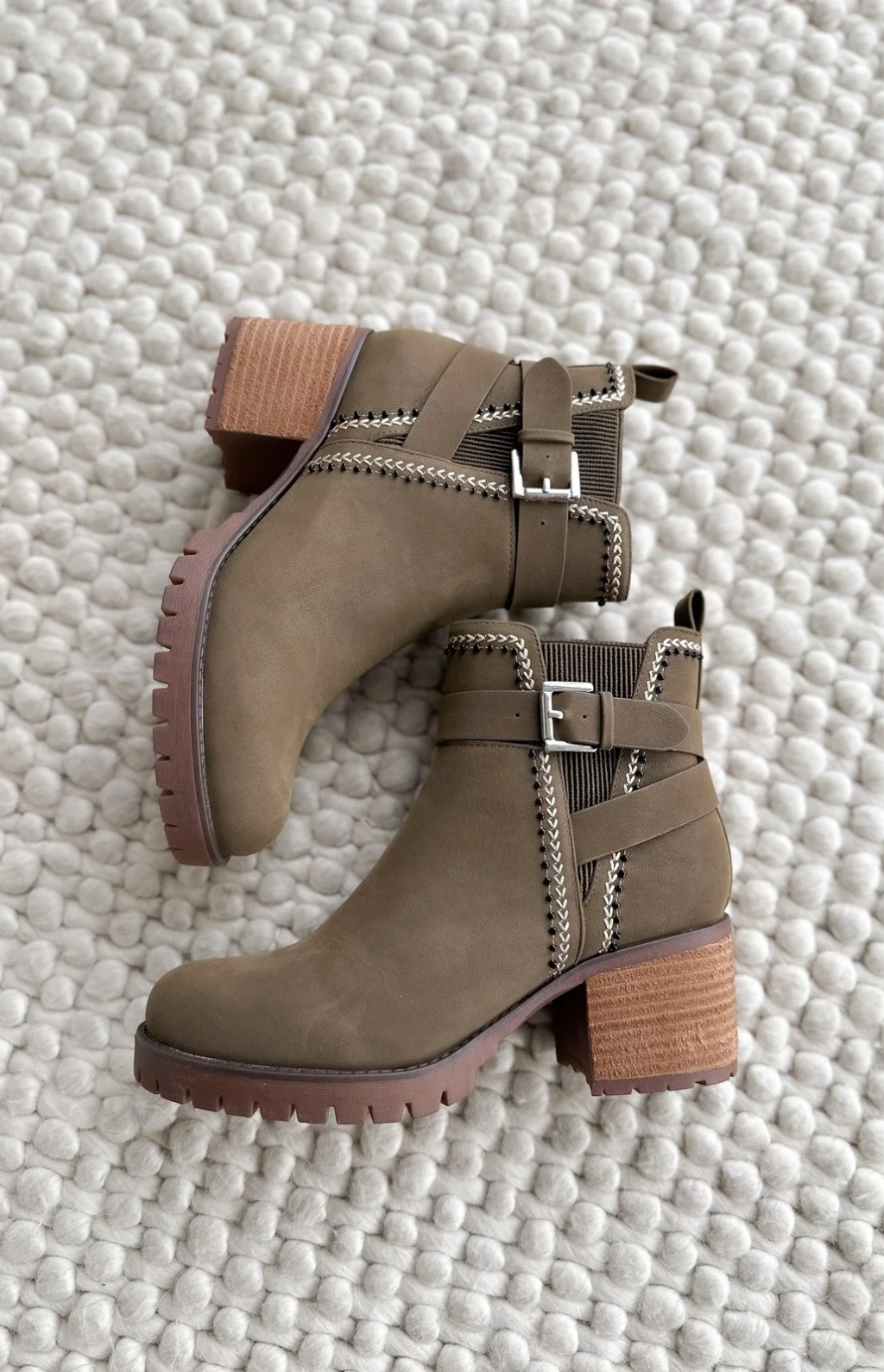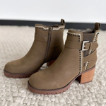 Olive Suede Heeled Boots With Silver Buckle