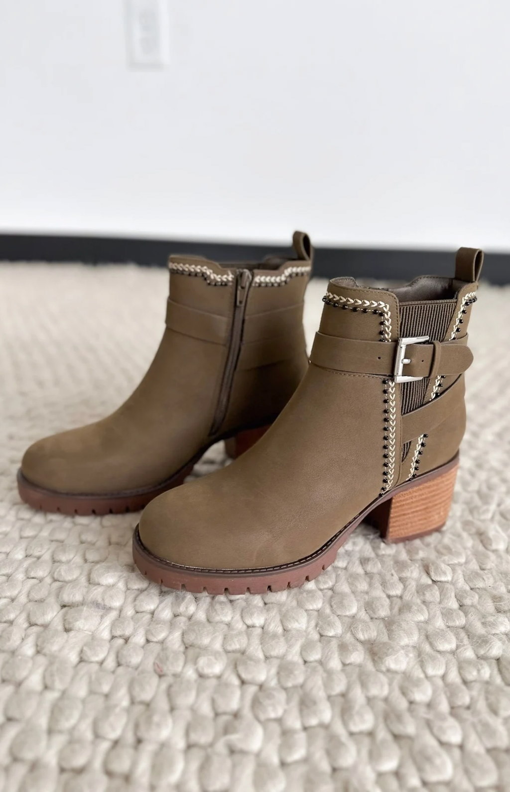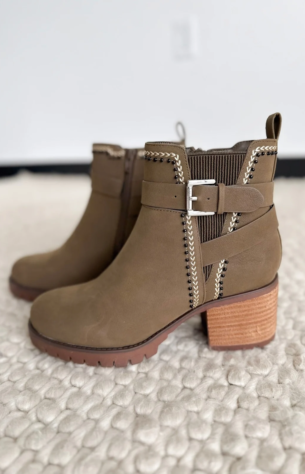 Add this fun statement bootie to your fall wardrobe. Crafted from sleek, vegan suede, this boot features a polished silver buckle and a chic brown outsole. It sits on a refined 2‑inch heel that elevates your everyday look, while the easy zip lets you slide in and go. Stylish, comfy, and season-ready—these boots are the fall staple your wardrobe deserves.