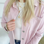 Pink Oversized Soft Denim Button Up Jacket