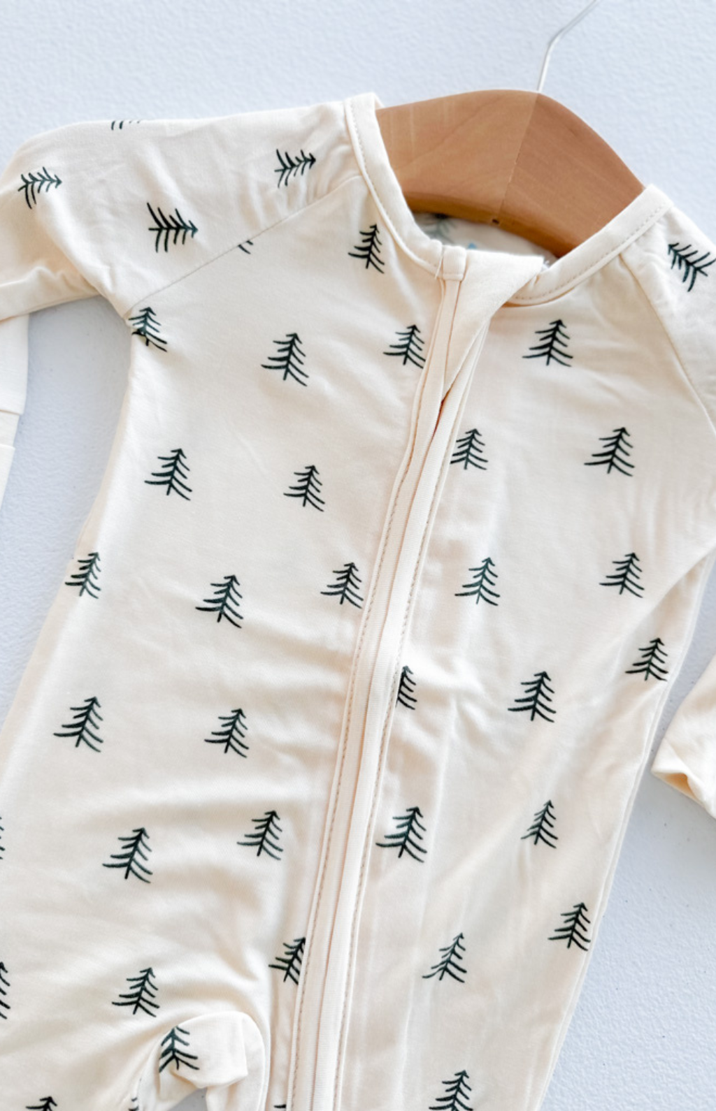 Wrap your little one in comfort and cuteness with our Pine Forest Bamboo Zipper Romper! Made from ultra-soft, breathable bamboo fabric, this adorable romper features an all-over pine tree print—perfect for the holidays.