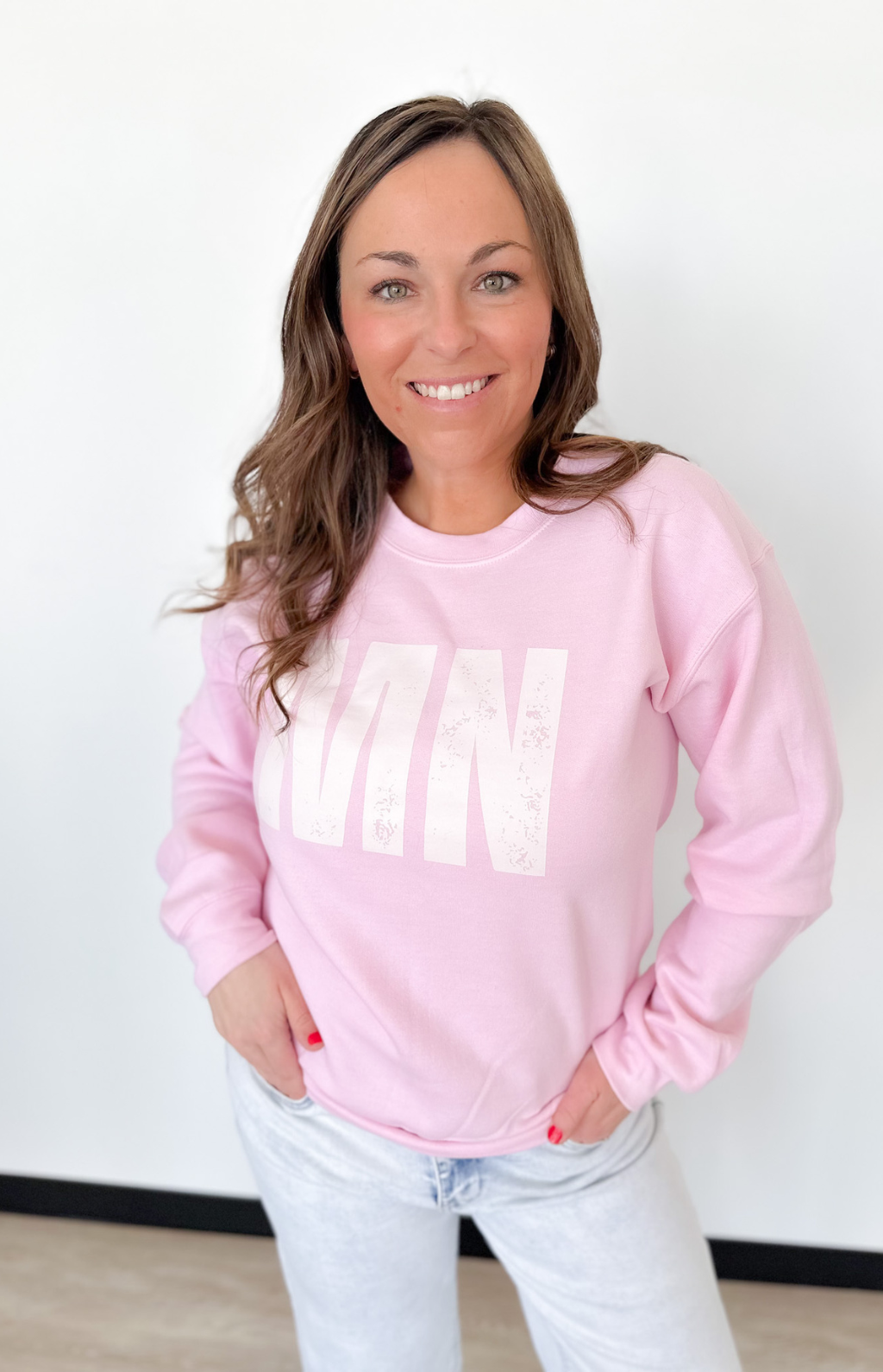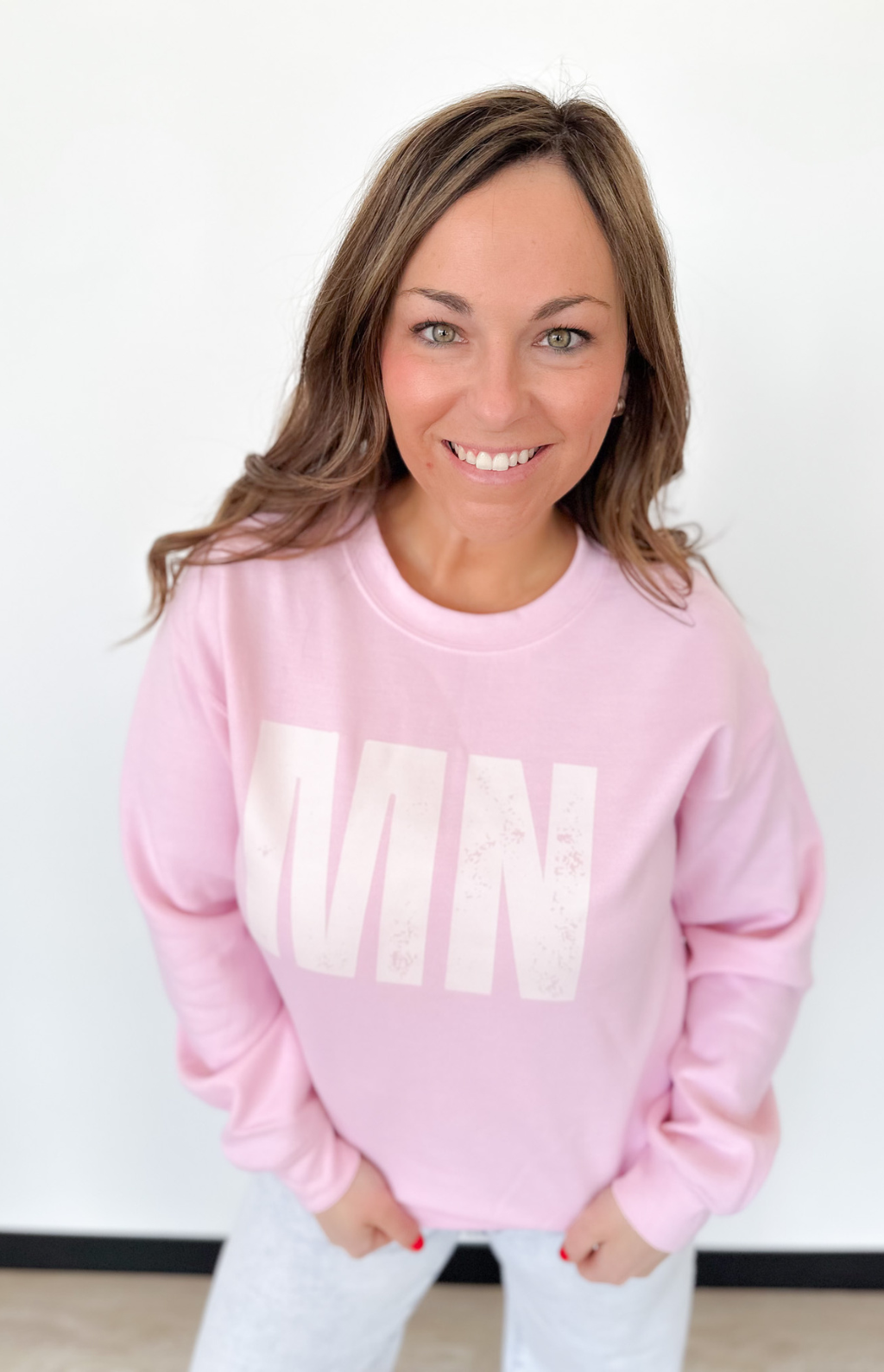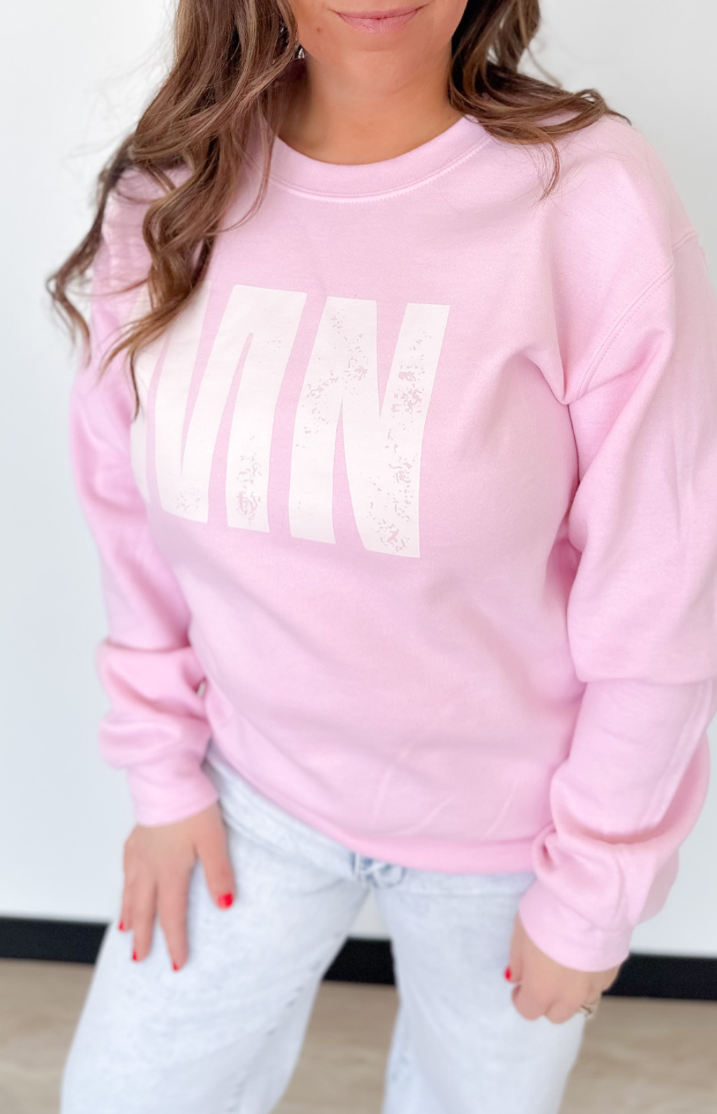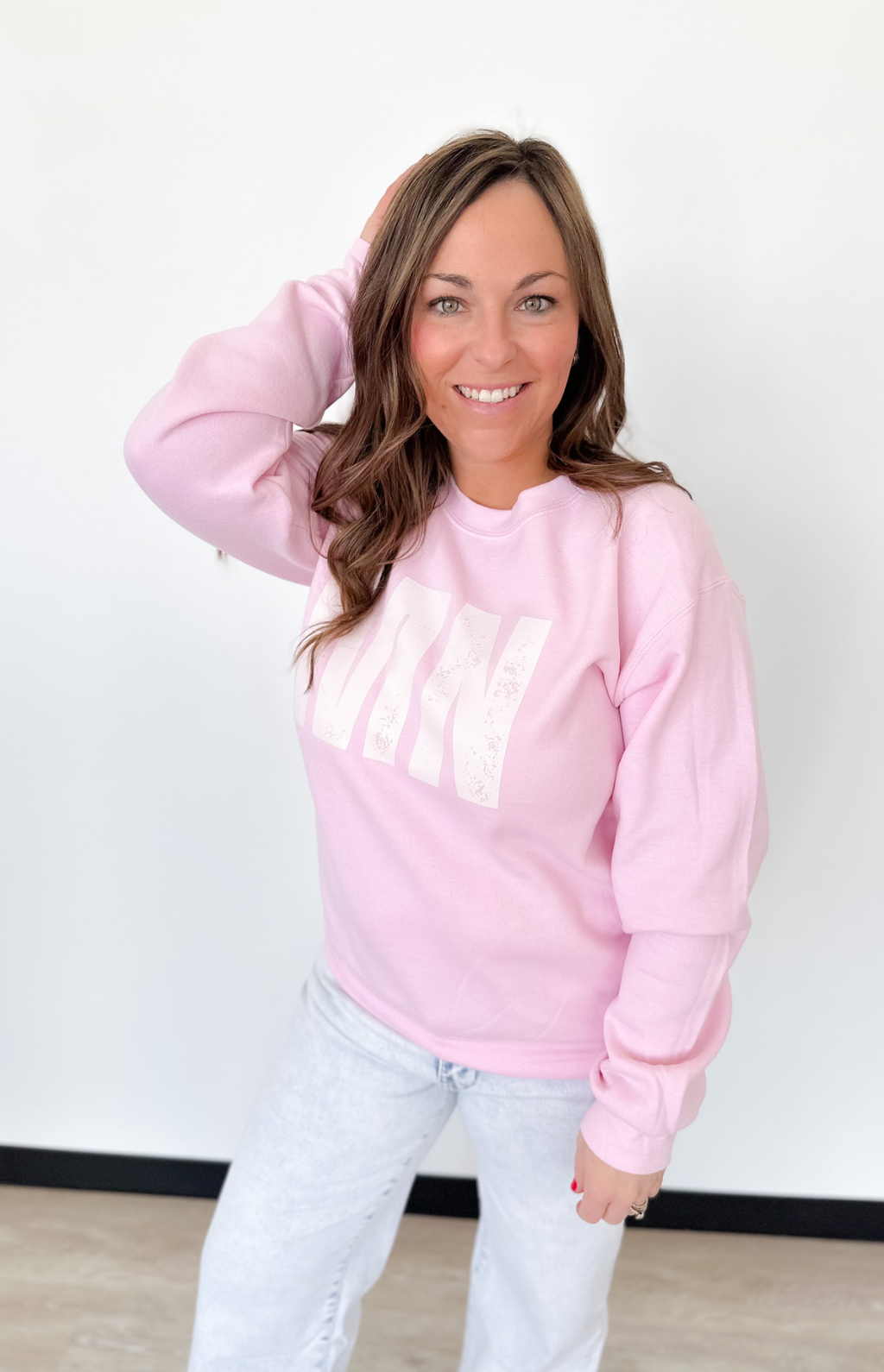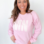 This pink MN crewneck pullover is the perfect mix of cozy and cute with a little hometown heart. The soft fabric and relaxed fit make it easy to throw on for busy mornings, coffee runs, or cheering from the sidelines. The MN graphic adds that fun, local touch while the classic crew neckline keeps it timeless.