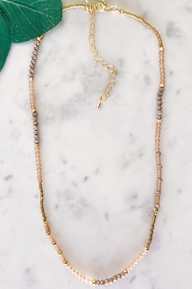 "Pink/Natural Beaded Necklace"