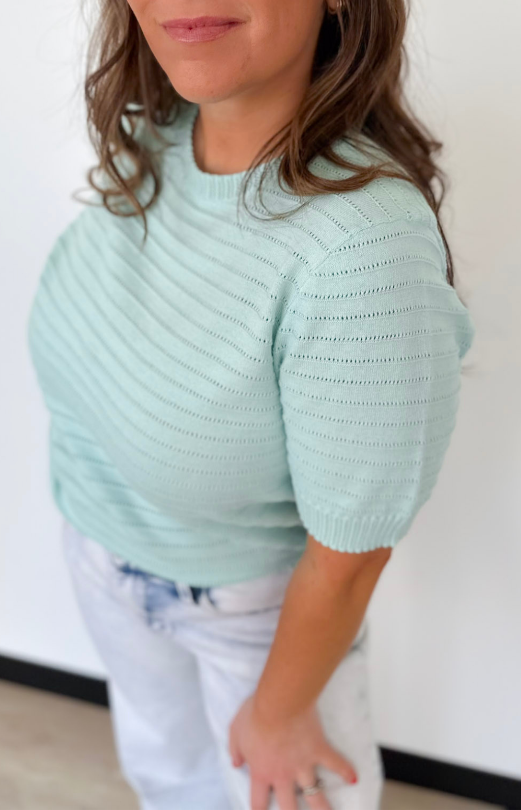 Pointelle Mint Short Sleeve Top