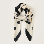 Channel timeless charm with this black and white polka dot silk scarf! With its classic print and luxuriously soft feel, it’s a playful yet elegant accessory that instantly elevates your outfit. Wear it tied at the neck, in your hair, or on your bag for a touch of vintage-inspired flair that never goes out of style!