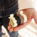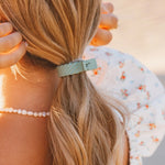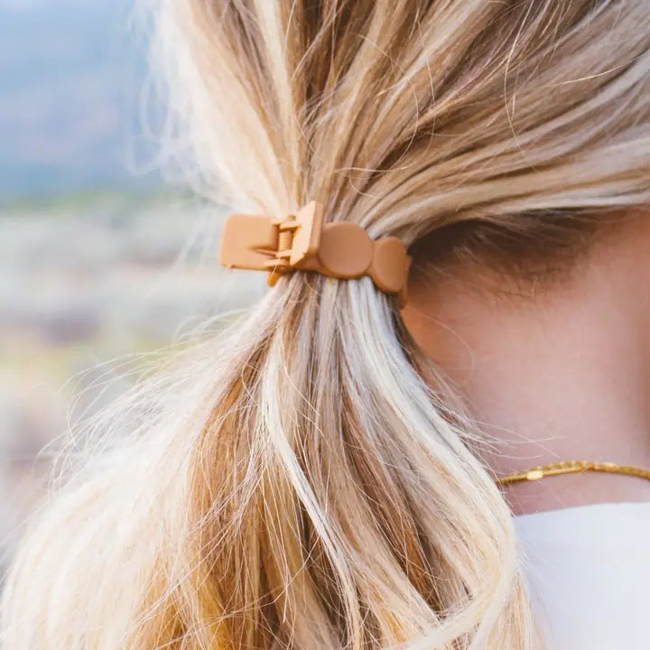These are the perfect ponytail claw clip in the cutest colors! I love the little detail on them and it measures less than 1 inch wide. I absolutely LOVE this unique style of clip for covering up your ponytail holder & level up your ponytail game!!