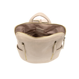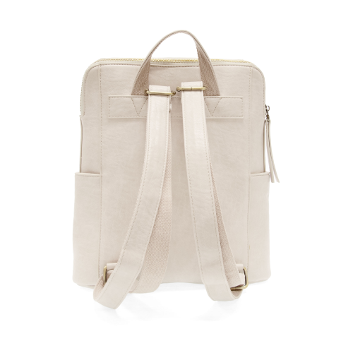 Update your street style with our compact vegan leather backpack in gorgeous buffalo grain vegan leather accented with gleaming metal zippers. Big enough to fit all you need for days on the go with pockets for your water bottle and zip pockets to keep your essentials handy.
