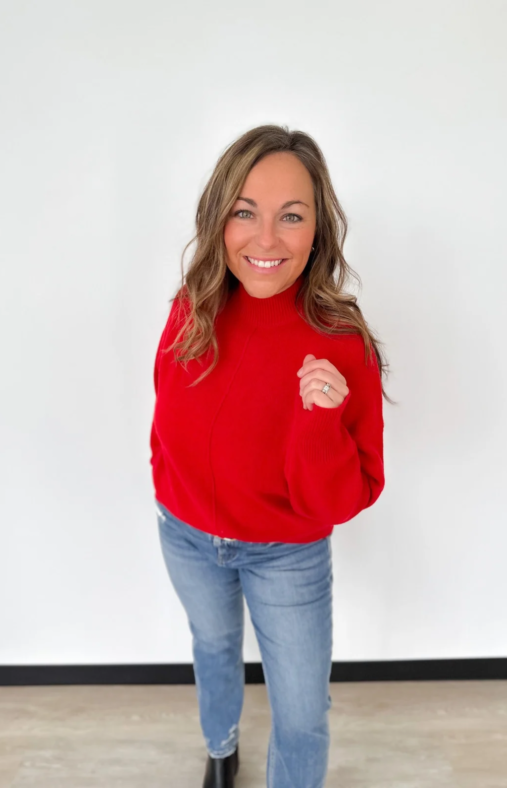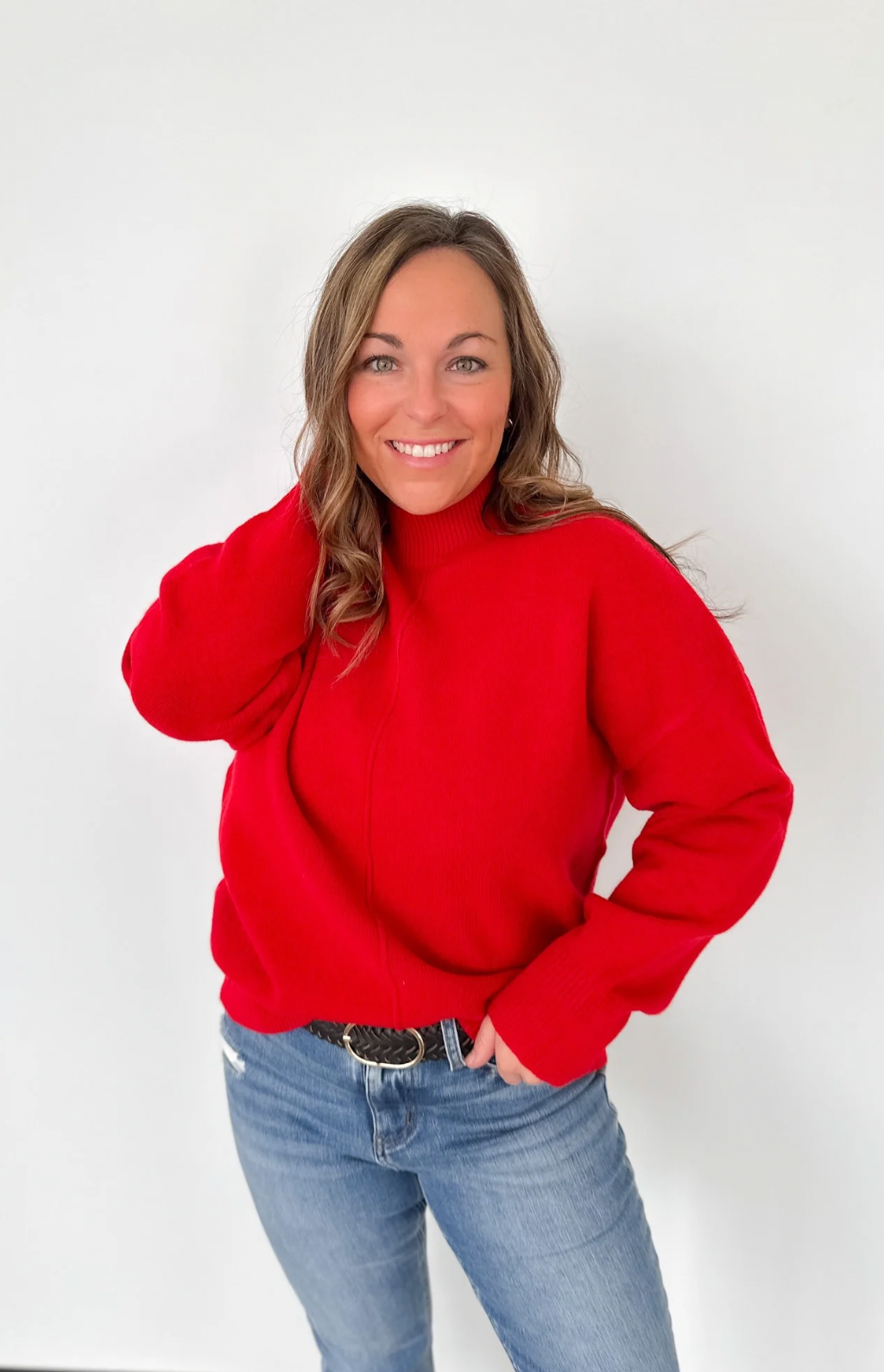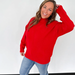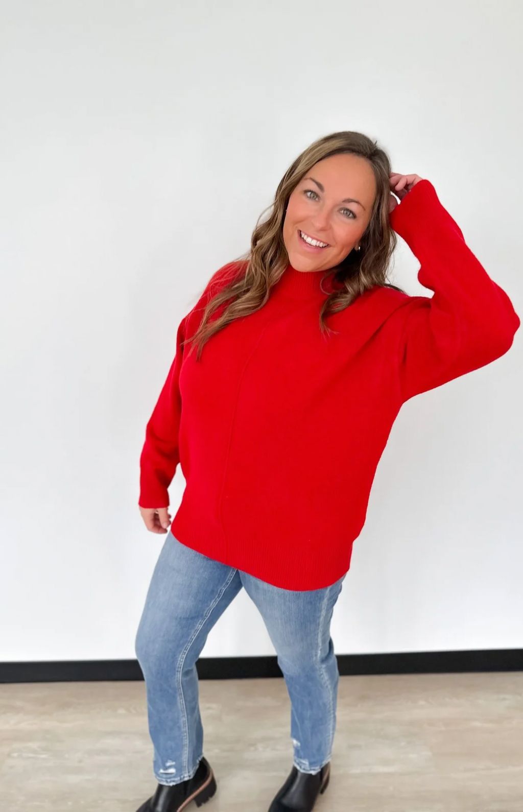 This red soft knit sweater brings the perfect pop of color to your cold-weather lineup. The relaxed fit keeps it comfy for all-day wear, while the mock neckline adds just the right touch of cozy polish. It’s soft, warm, and easy to style—pair it with jeans for a casual day out or dress it up with trousers for the office. Whether you’re running errands or heading to dinner, this one makes looking effortlessly put-together a breeze.