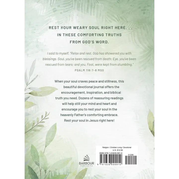 Any time your beautiful soul craves peace and stillness, you'll find just the encouragement, inspiration, and biblical truth you need in this delightful devotional journal. 180 refreshing readings will help settle your heart, mind, and soul. Read on and rest your soul in the heavenly Father's comforting embrace.
