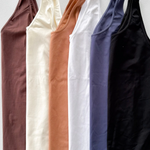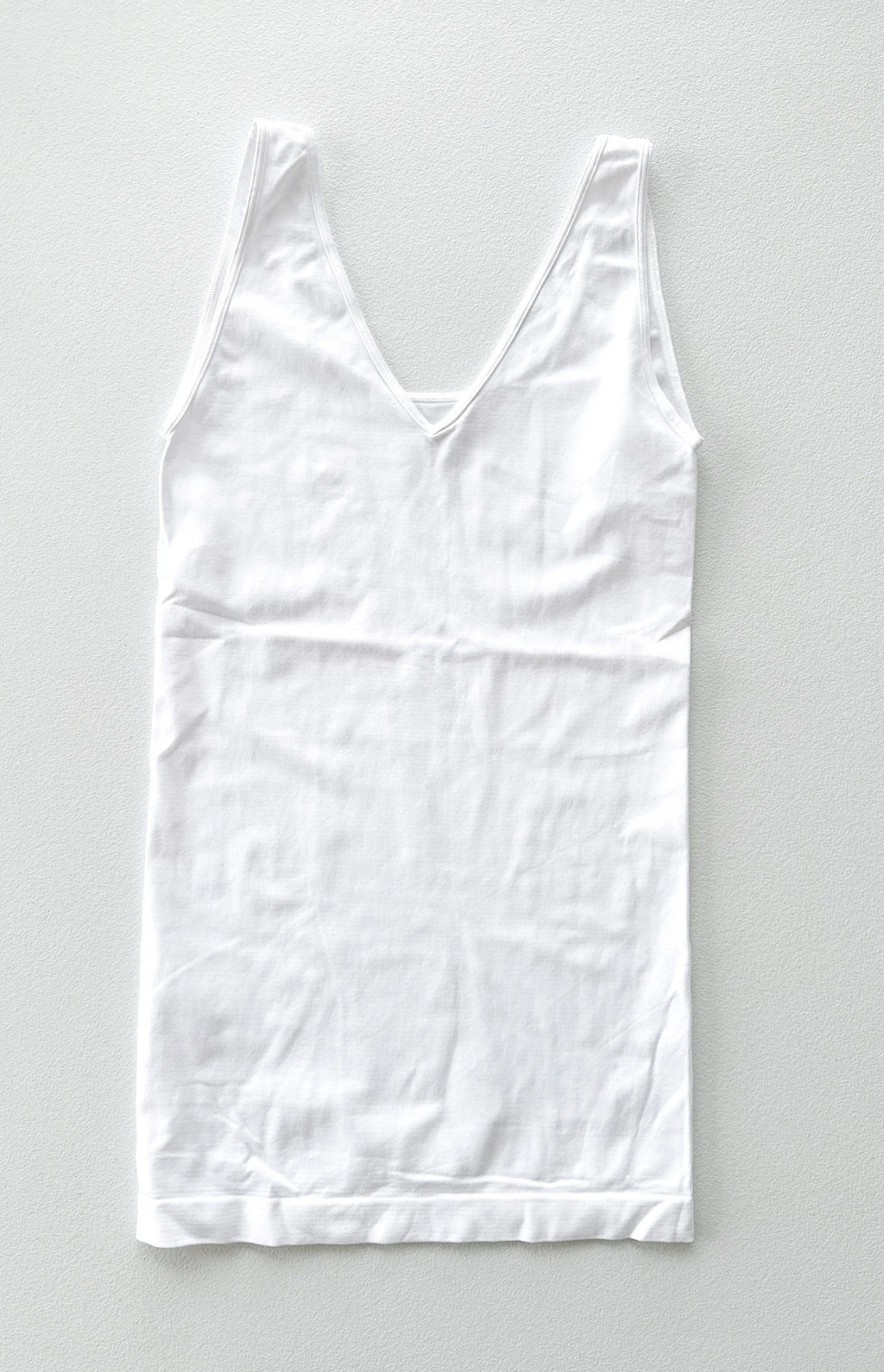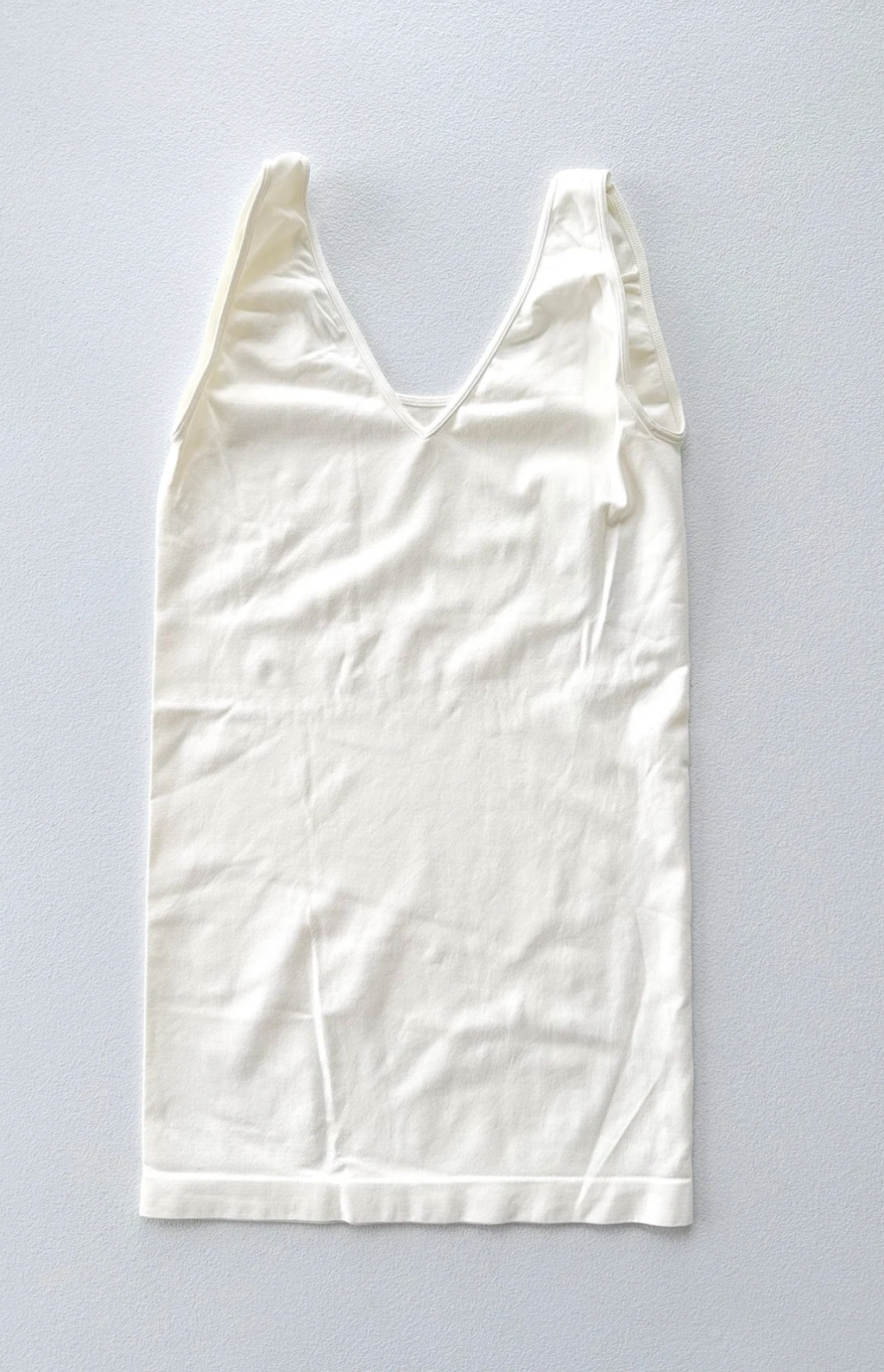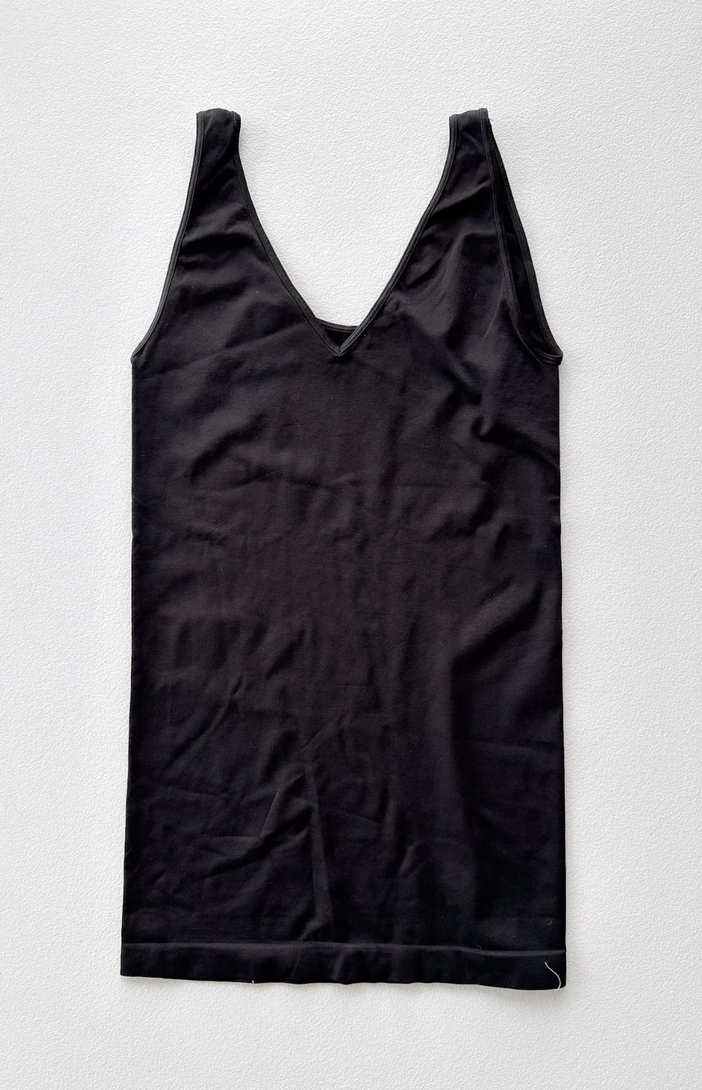 - Details: Fabric has stretch, fitted style, can be worn scoop neck or v-neck, thick straps
