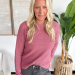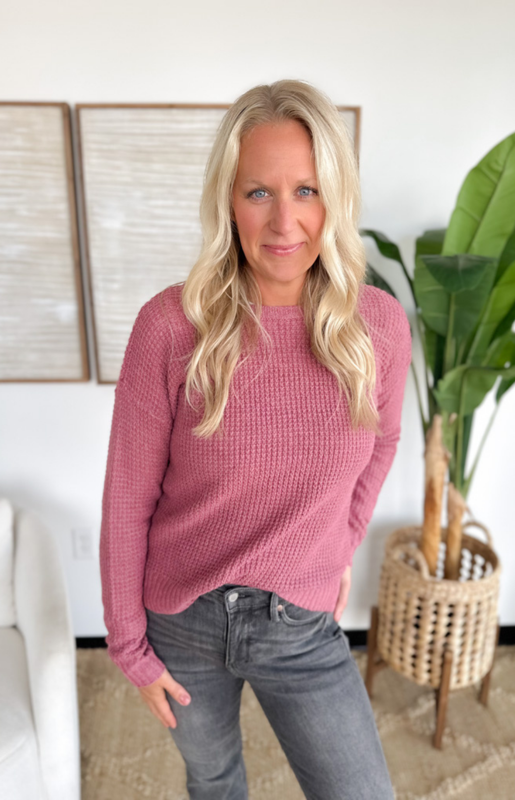 Fresh and cozy, this rose knit sweater is the perfect everyday layer. The soft knit keeps it comfortable while the classic rose color add a timeless touch you’ll wear on repeat. Designed with an easy, relaxed fit, it pairs effortlessly with jeans. A simple staple with just the right pop of color to brighten your wardrobe!