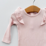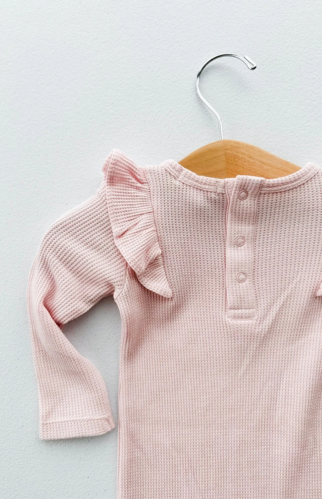 Snuggle season just got sweeter! Our Ruffle Sleeve Romper is made from soft, textured waffle knit fabric that’s perfect for chilly days and cozy cuddles.