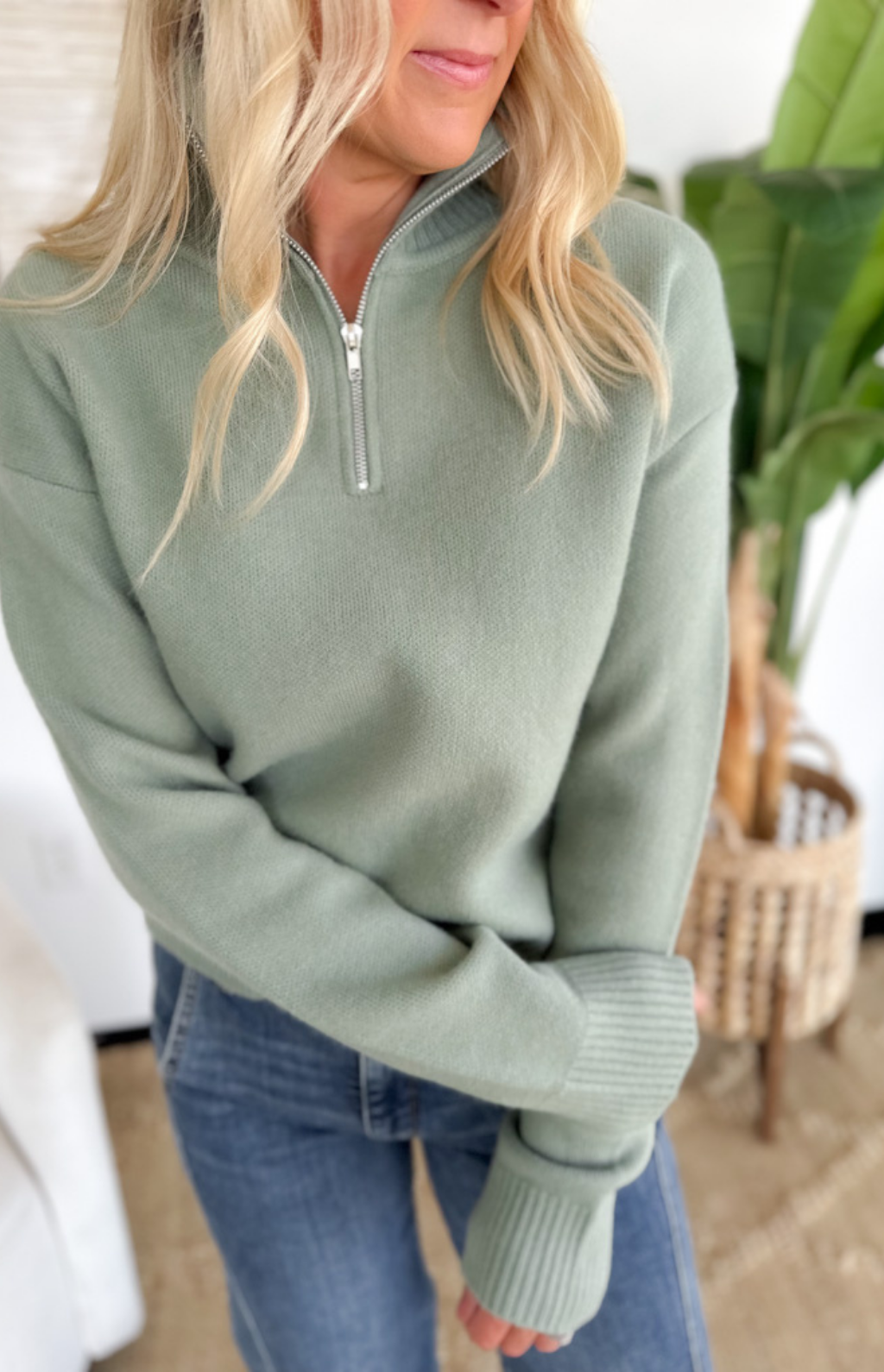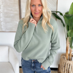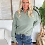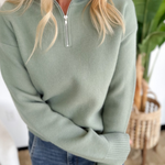 This sage green half zip pullover is the perfect mix of laid-back and polished. The knit fabric keeps it soft and cozy, while the half zip detail adds a sporty, modern touch. Its relaxed fit makes it easy to layer over tanks or tees, and the sage green shade brings a fresh, versatile vibe that works year-round. Pair it with jeans, joggers, or leggings for an effortlessly put-together look. Comfortable, easy, and stylish—this pullover will be your new go-to for busy days on the move.