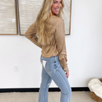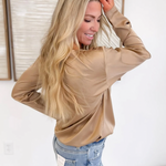 Sand Satin Long Sleeve Drawstring Hemline Top