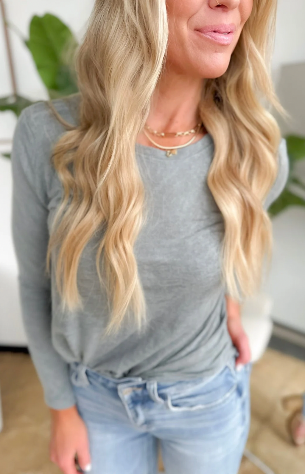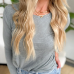 Its relaxed fit makes it perfect for pairing with jeans or leggings creating a look that’s casual yet polished. Ideal for running errands, coffee dates, or cozy days at home, this top is a simple way to feel put-together without trying too hard.