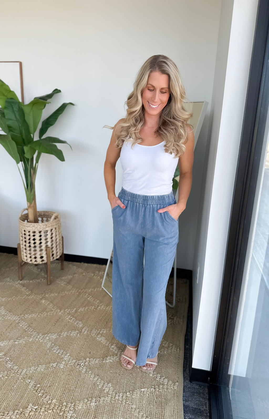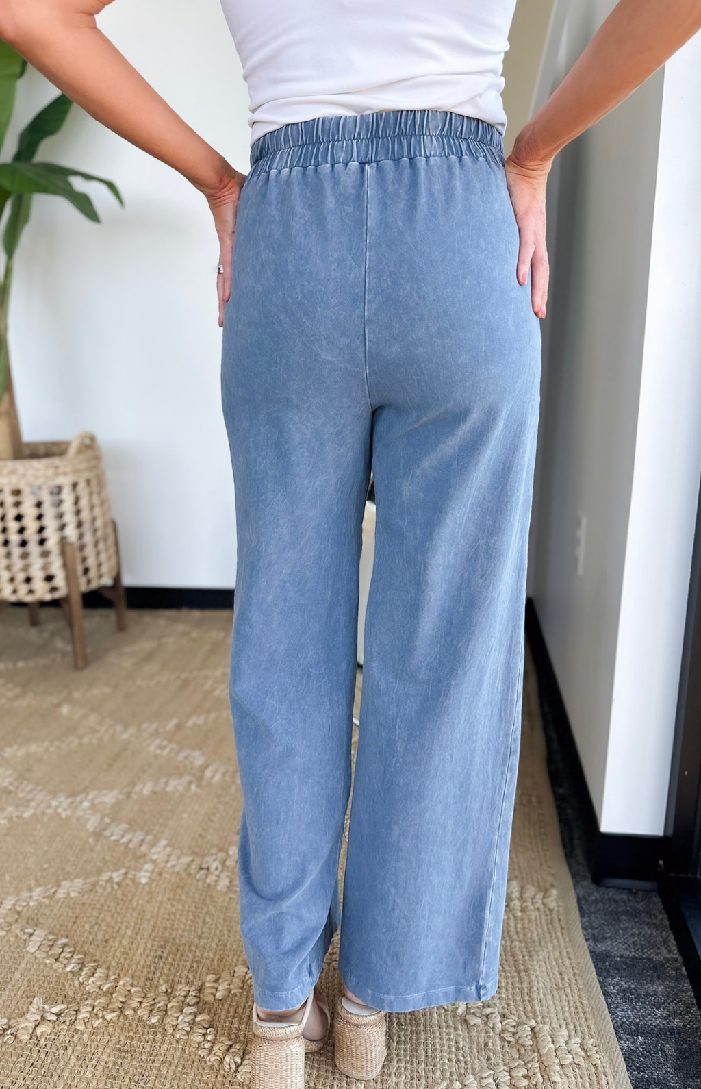 Slate Elastic Waist Wide Leg Pants