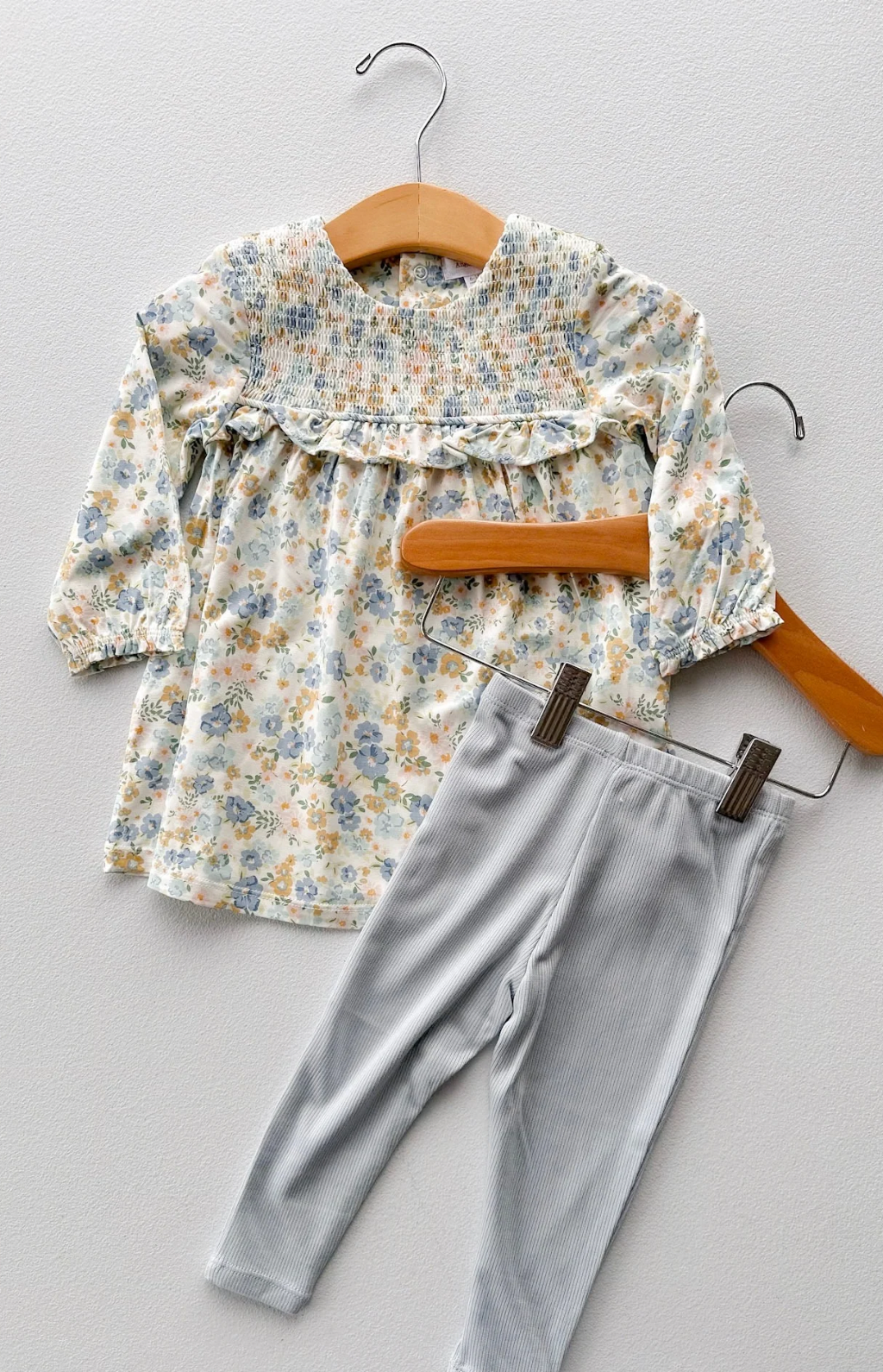 Smocked Ruffle Floral Dress & Leggings