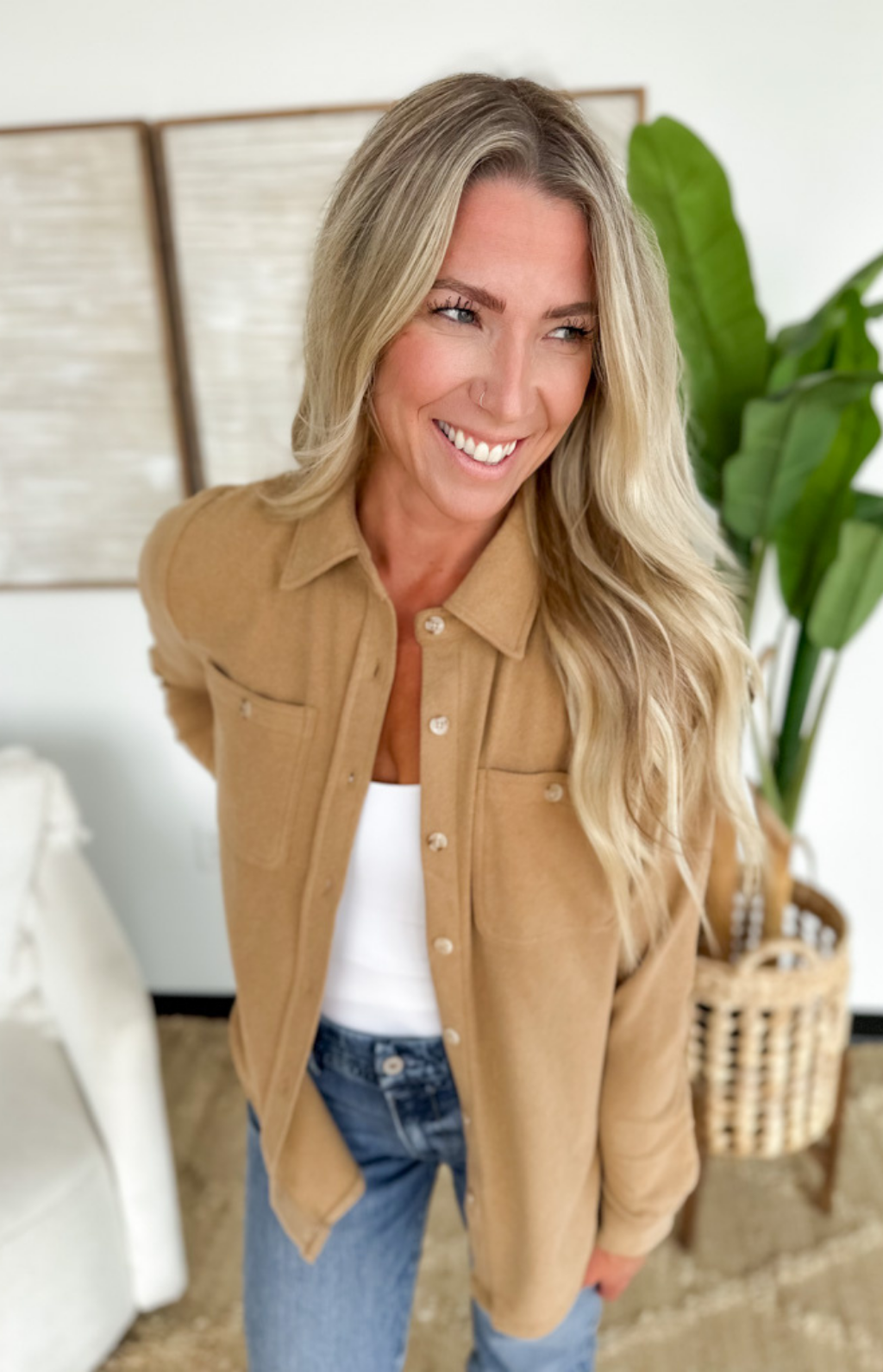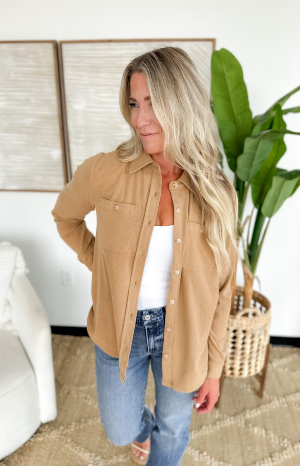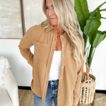 This button-up collared long sleeve taupe top is the perfect balance of polished and effortless. The soft, neutral hue makes it endlessly versatile, while the classic collar and button-front design keep it timeless. Its relaxed fit drapes comfortably, making it easy to tuck into trousers for work or wear loose with jeans for a laid-back vibe. A true closet essential you’ll reach for again and again!