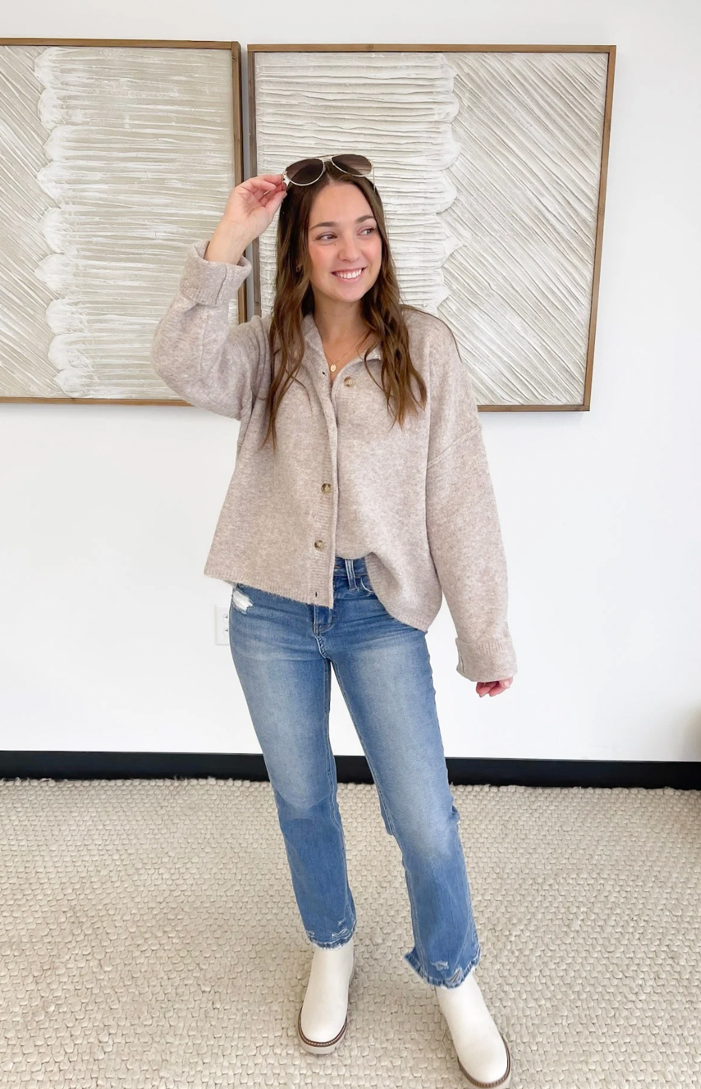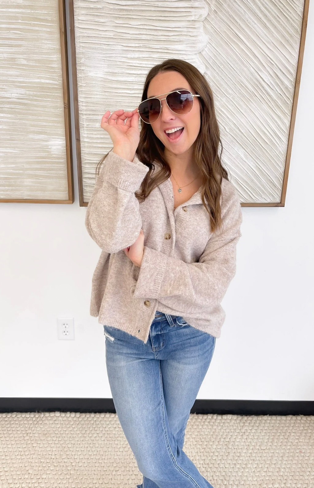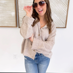This soft knit oatmeal cardigan is your new “keep it by the door” layer because it works with absolutely everything. The button-front design lets you wear it open on casual days or closed when you want a little extra polish. The cozy knit feels gentle and lightweight, perfect for busy mornings when you just need something easy and dependable. Toss it over a tank, a tee, or even a dress—you’ll look effortlessly put together either way. It’s that quiet, comforting piece that makes you feel confident and covered, no matter what the day brings.