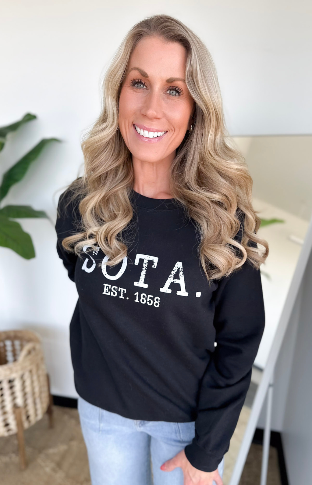This black Minnesota crewneck is a timeless staple you’ll reach for year-round. The soft, cozy fabric gives you that comfortable, lived-in feel, while the classic crewneck fit keeps it easy and flattering. The black color makes it effortless to style with literally everything—denim, leggings, shorts for a casual-cute look.