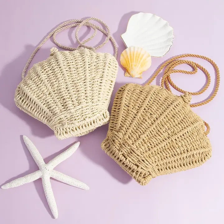 This crossbody bag brings a luxurious straw braided seashell bag style. Immerse yourself in the details of design, as this crossbody bag effortlessly becomes a conversation starter.