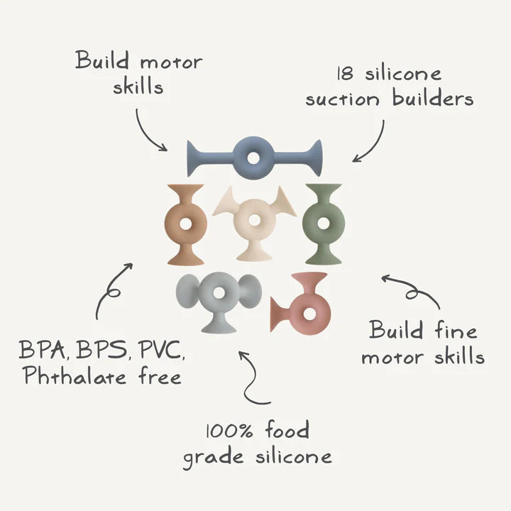 Unleash creativity and fun with this set of 18 silicone suction builder toys. Ideal for fostering motor skills and spatial awareness with endless opportunities to explore and create.