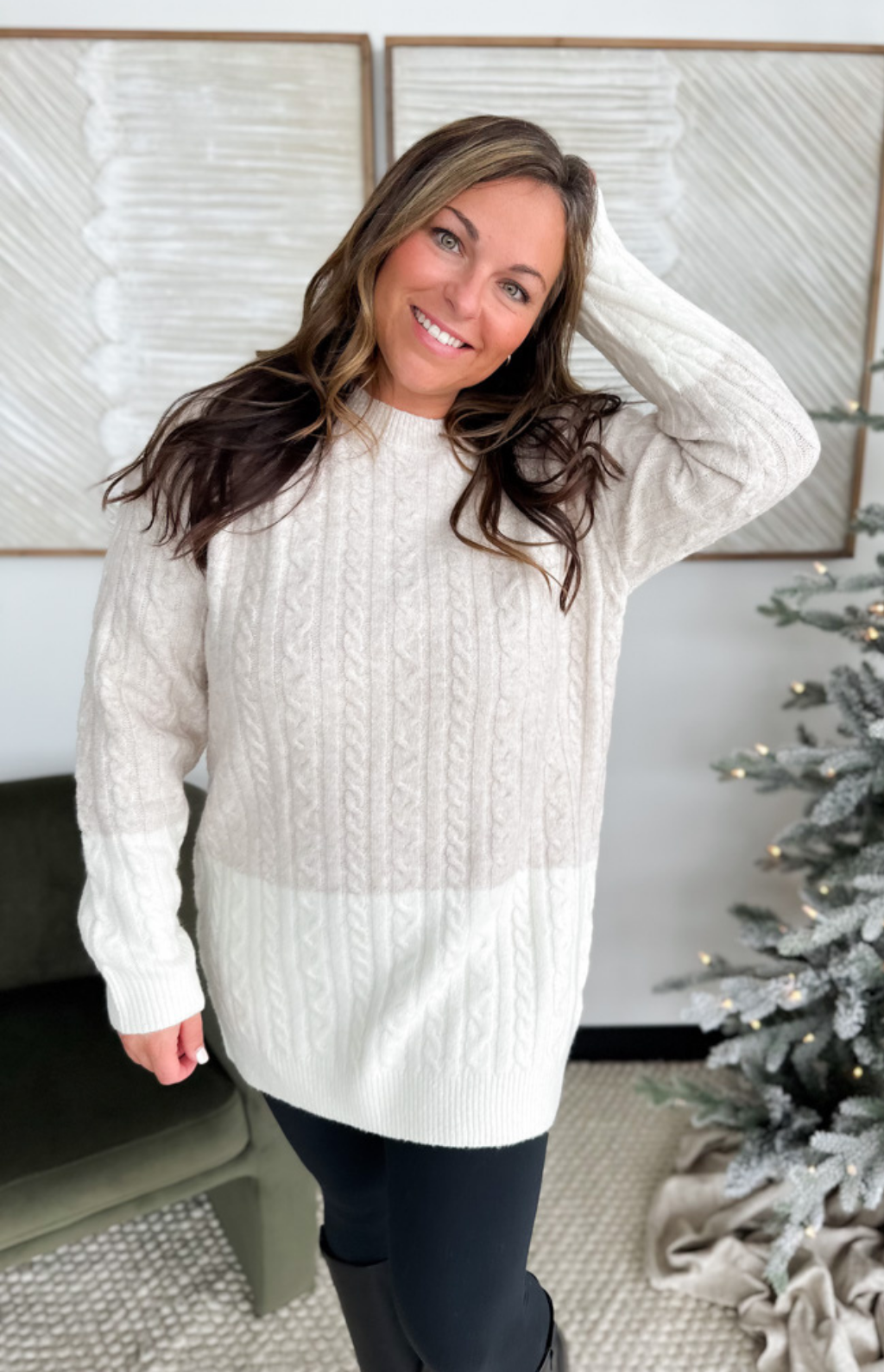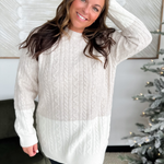 Taupe/Cream Cable Knit Sweater Mini Dress