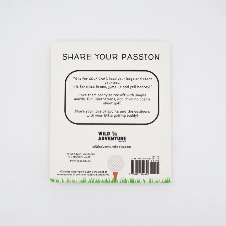 “G is for GOLF CART, load your bags and start your day. H is for HOLE in one, jump up and yell hooray!” Have them ready to tee off with simple words, fun illustrations and rhyming poems about golf.