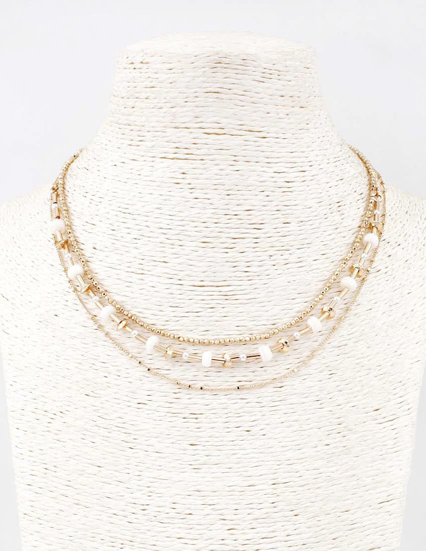 Three-Layer Gold Metal and Beaded Necklace