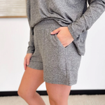 These lounge shorts are the little dose of comfort every busy woman deserves. The high-rise elastic waistband gives you that secure, flattering fit without ever feeling tight, and the soft two-tone knit makes them feel like a warm hug. They’re lightweight, easy to move in, and yes—pockets, because you always need a place for your phone or lip balm. Whether you’re relaxing after a long day, tackling weekend chores, or sneaking in a quiet morning moment, these shorts keep you comfy while still looking cute. Pair them with the matching top for an effortless at-home set you’ll reach for on repeat.