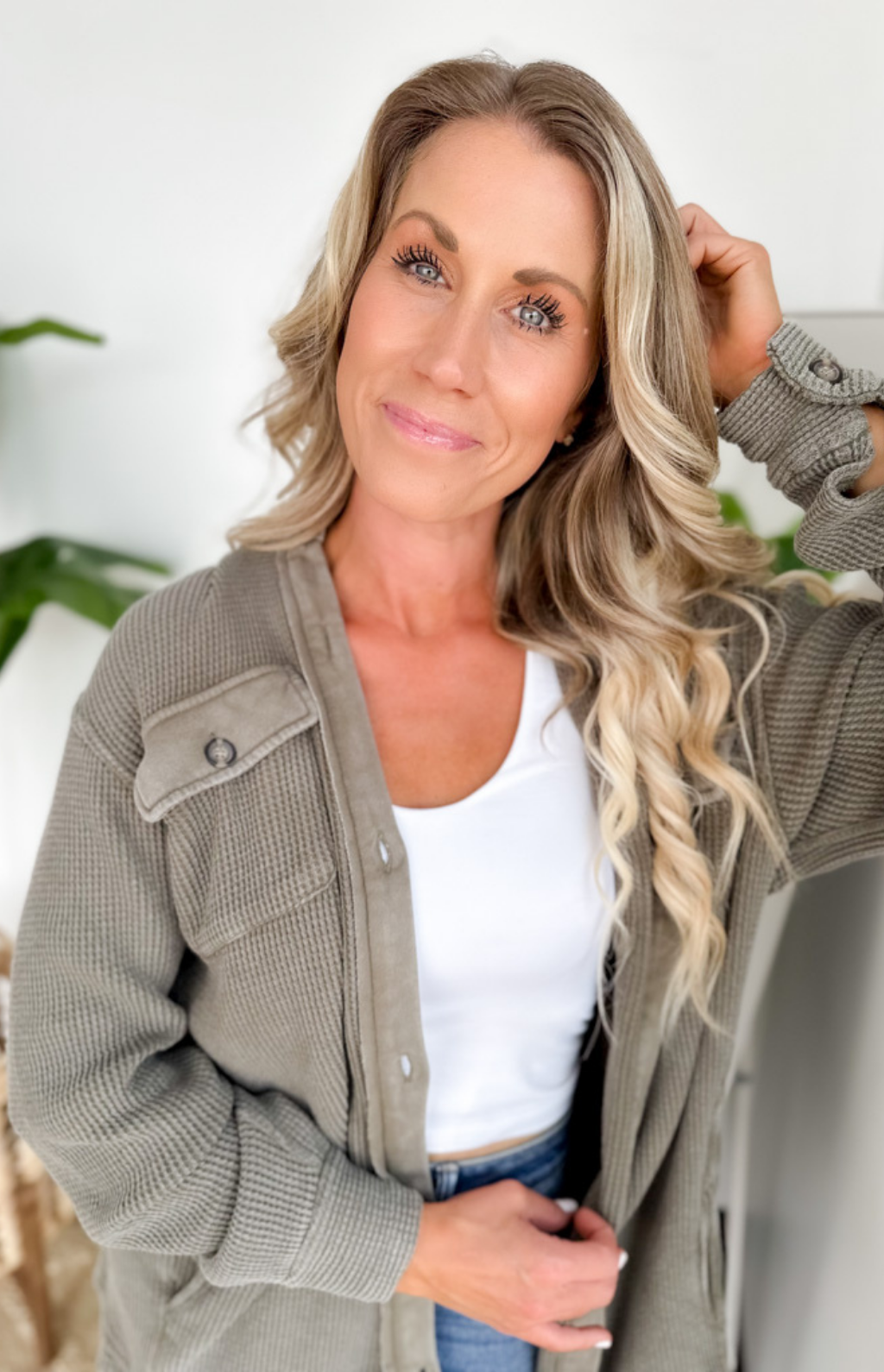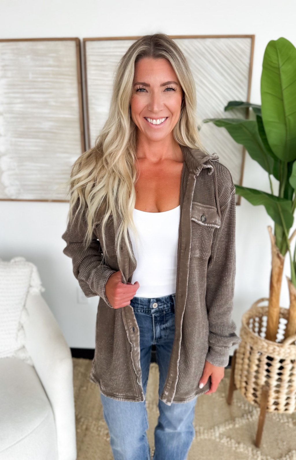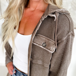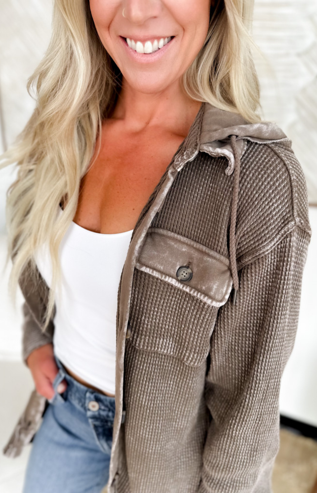 Waffle Knit Button Up Hooded Shacket (3 Colors)