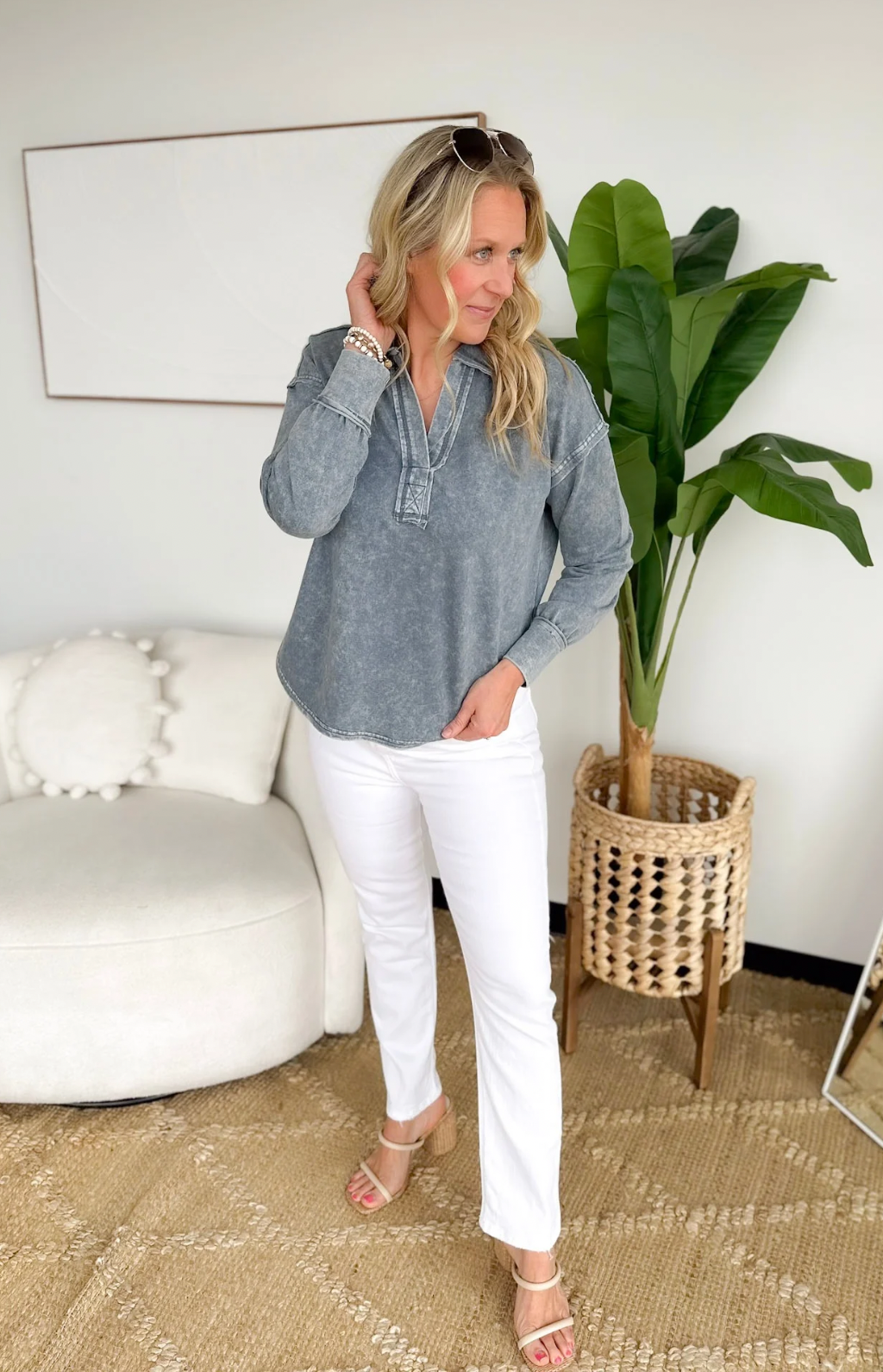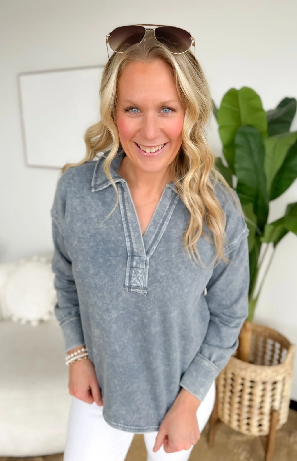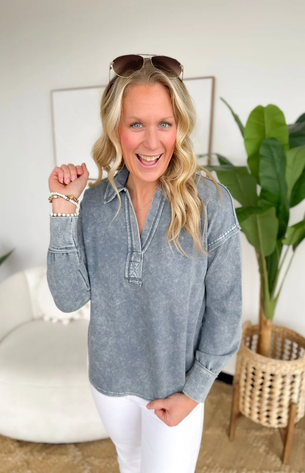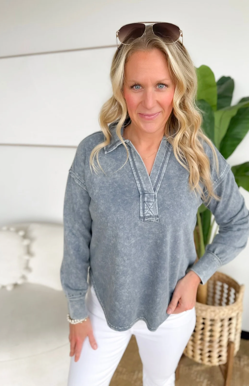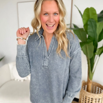 Washed Long Sleeve Collared Top