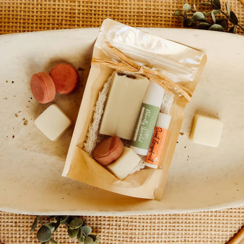 Discover The Weekender, a curated collection of sample-sized favorites perfect for those new to our all-natural soaps, shampoos, lip balms, and lotion sticks. This travel-friendly set offers a convenient way to experience our bestsellers without commitment, making it ideal for your next adventure.