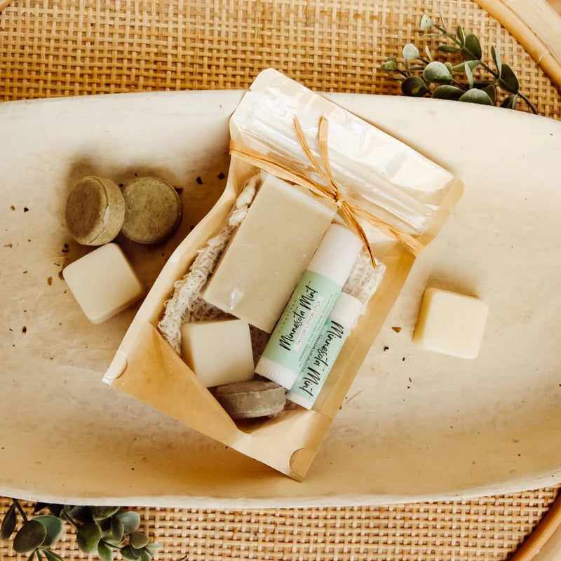 Includes: Tea Tree & Nettle Shampoo Conditioner Bar, Eucalyptus Spearmint Soap, Minnesota Mint Tallow Lotion Stick, Minnesota Mint Tallow Lip Butter