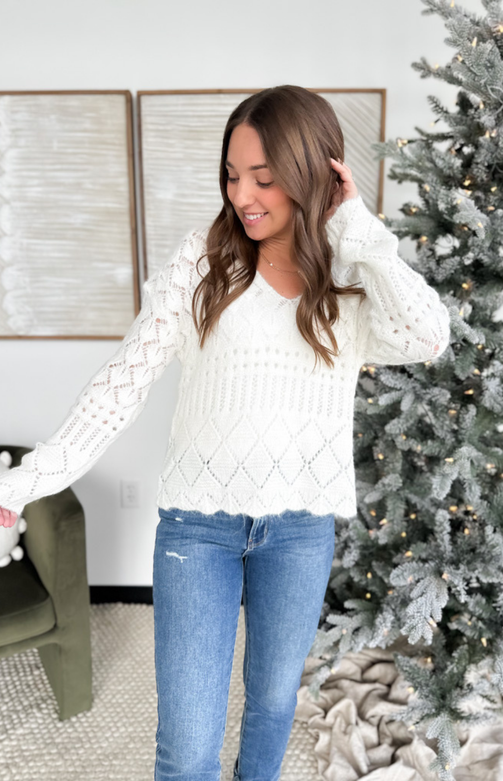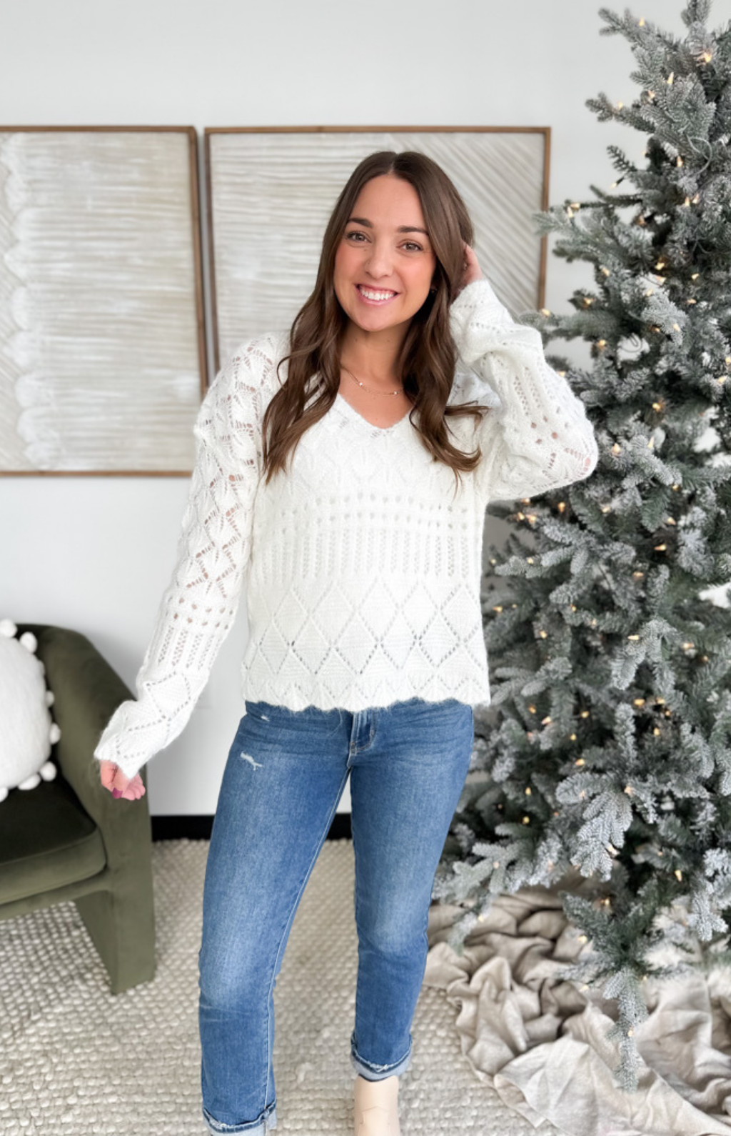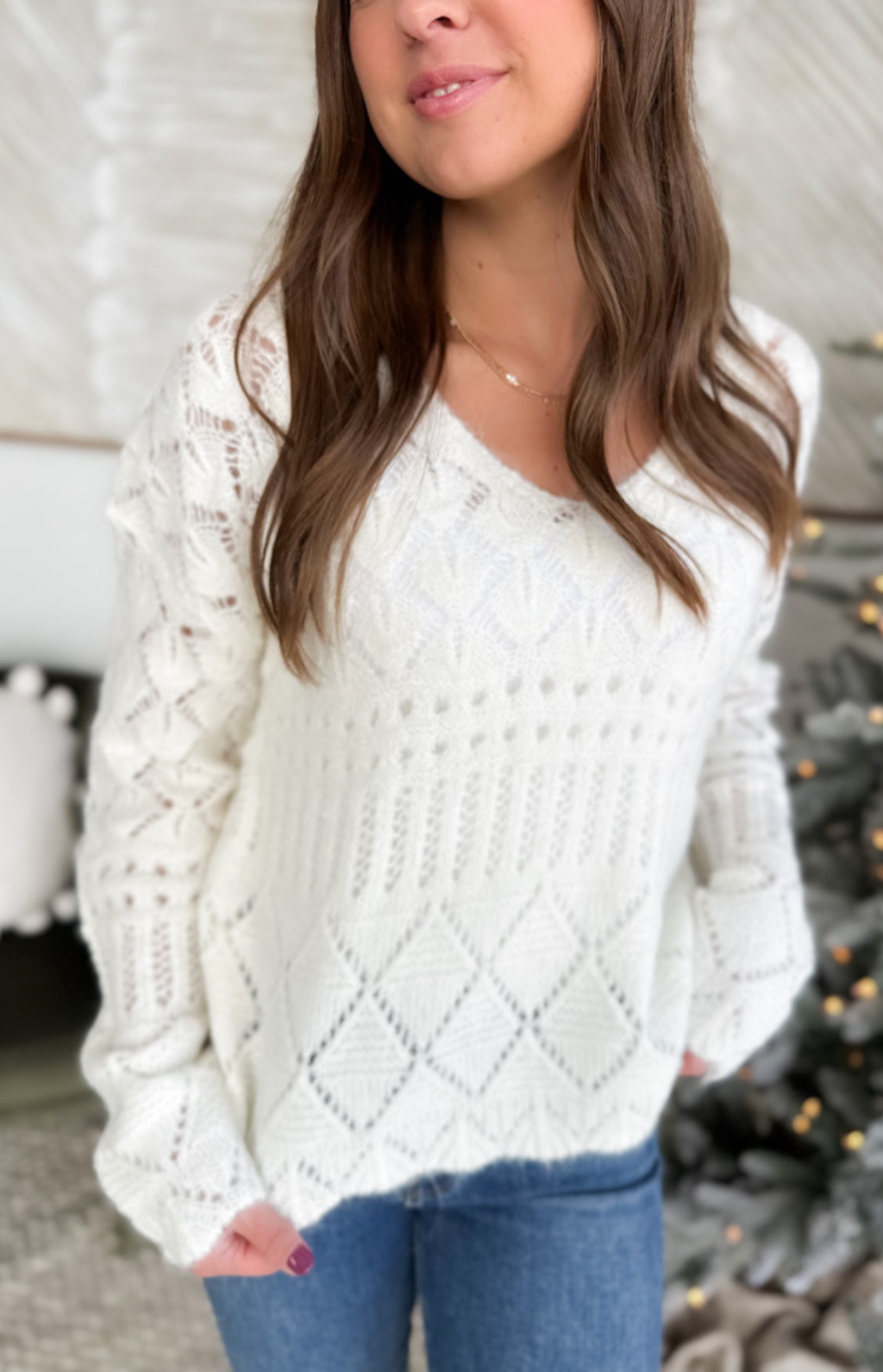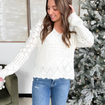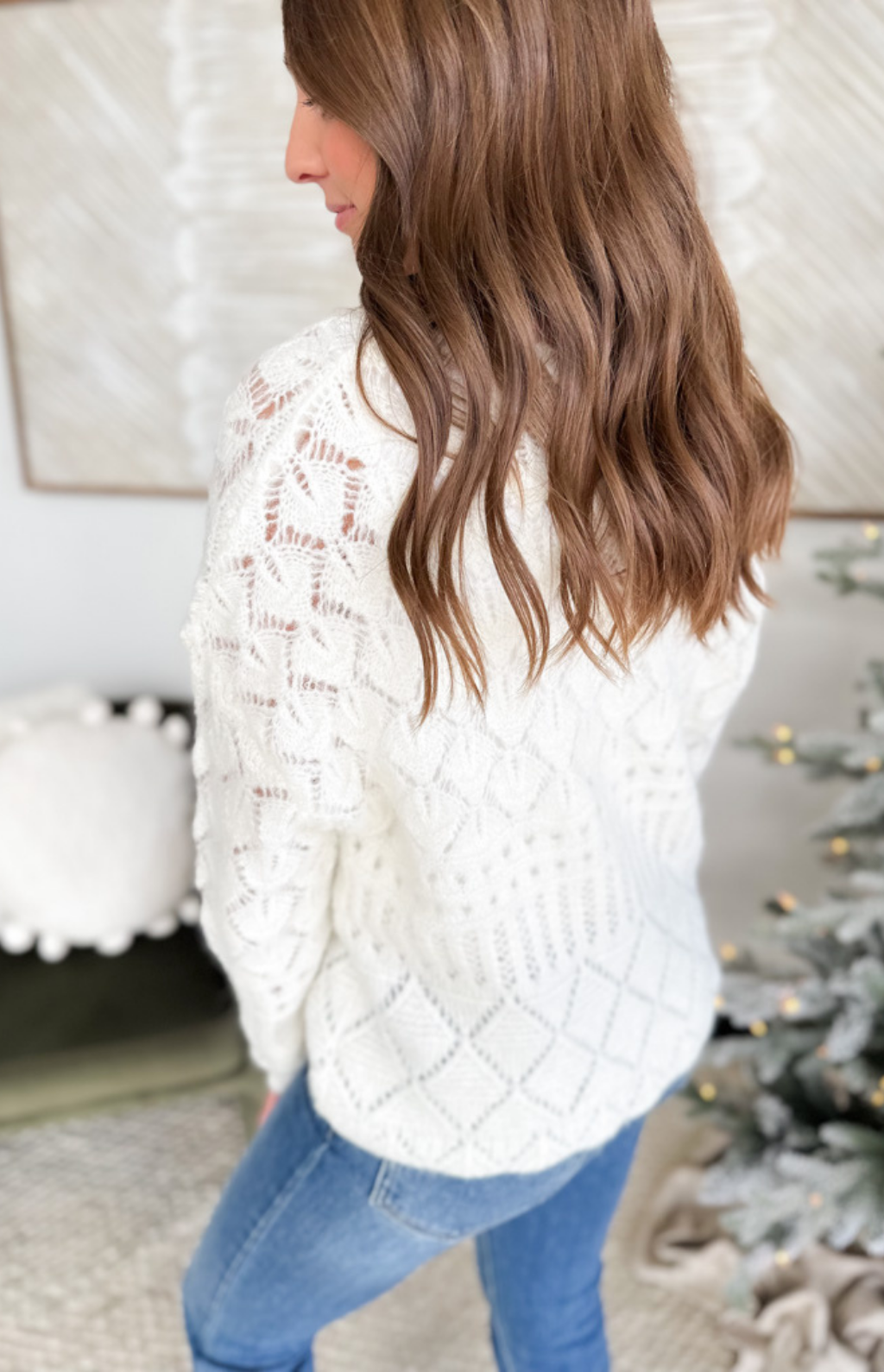 This white open-knit crochet sweater is airy, feminine, and effortlessly stylish. The delicate crochet pattern adds texture and a touch of elegance, while the lightweight fabric makes it perfect for layering over tanks. Its relaxed fit keeps it comfortable for everyday wear, whether you’re running errands, meeting friends, or lounging at home. The crisp white color pairs beautifully with jeans, skirts, or shorts, making it a versatile wardrobe staple that’s as chic as it is easy to wear.