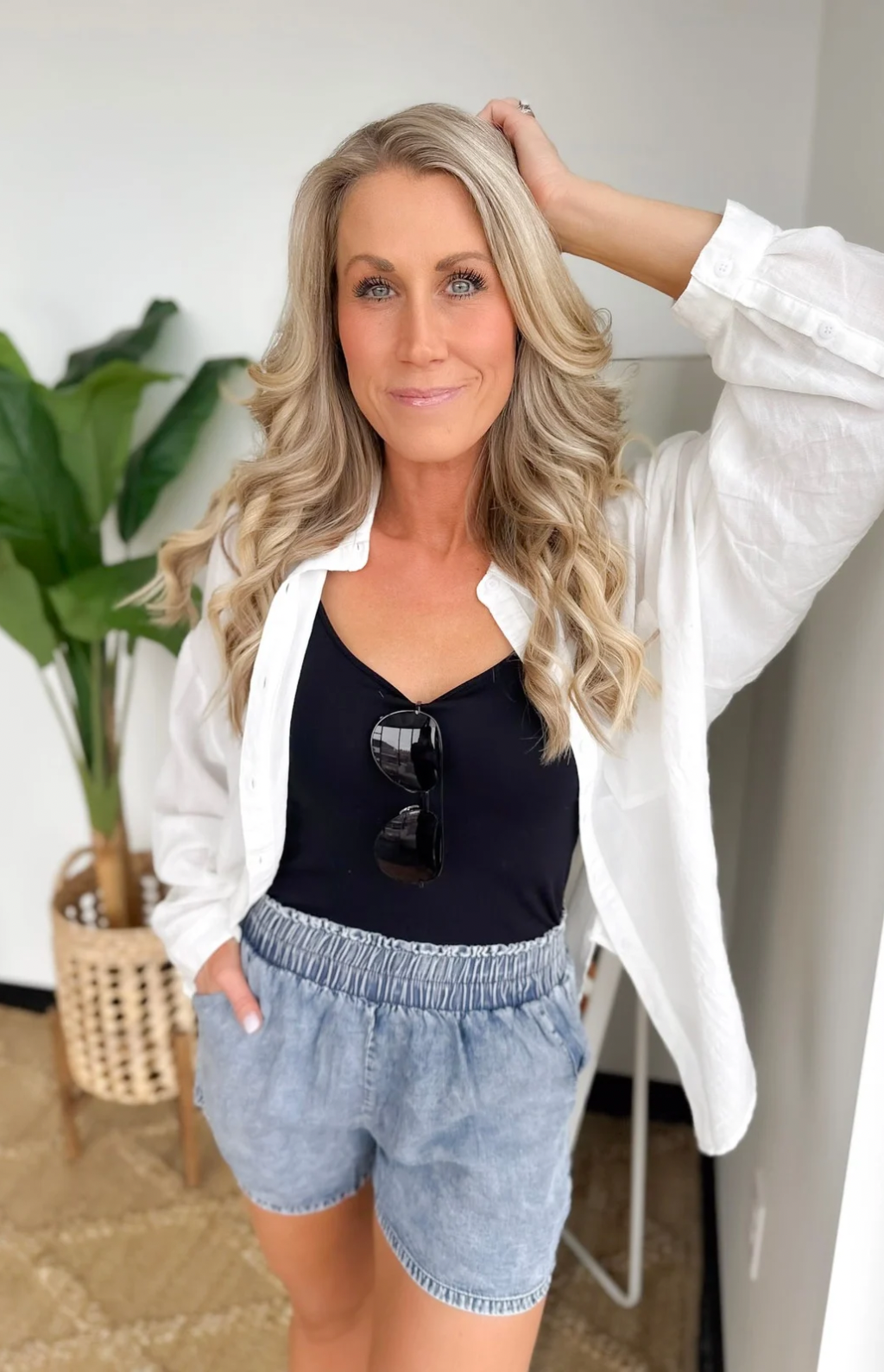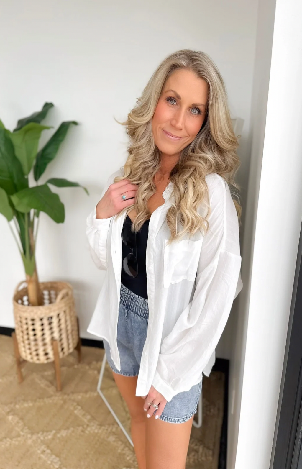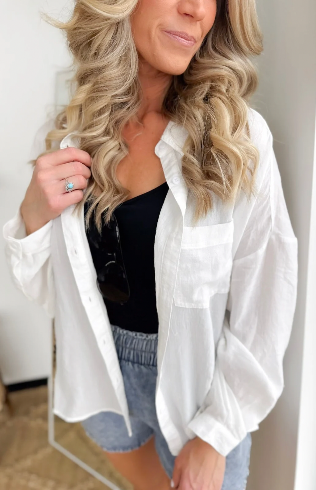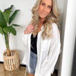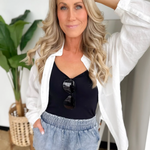 This white soft linen button-down shirt is a vacation essential you’ll reach for again and again. The lightweight, breathable fabric keeps you cool, while the classic collared neckline adds an effortlessly polished touch. A flattering high-low hemline gives you easy coverage and styling flexibility—front-tucked, tied, or worn loose. Perfect for beach days, travel, or casual dinners, it layers beautifully over tanks or swimsuits. It’s one of those easy pieces that makes vacation dressing feel simple, relaxed, and confidently put together.