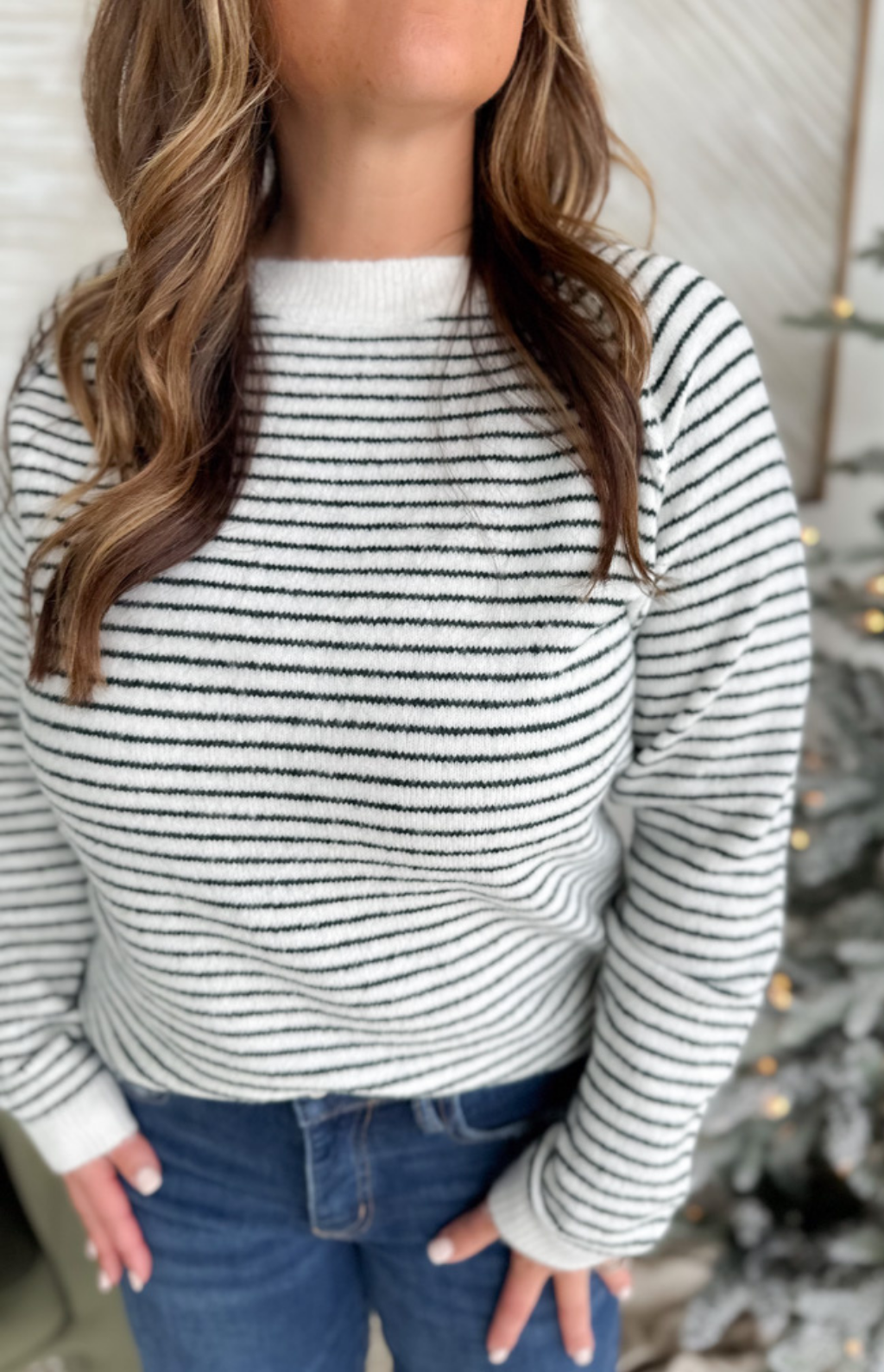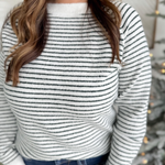 This white knit sweater with thin green stripes is the perfect blend of casual and crisp. The soft knit feels cozy without being heavy, and the subtle green stripes add just the right touch of color. With its relaxed fit and easy silhouette, it’s the kind of piece you can throw on with jeans or trousers and still look effortlessly put-together. Simple, classic, and versatile—it’s a wardrobe staple you’ll wear on repeat.