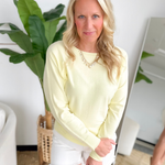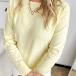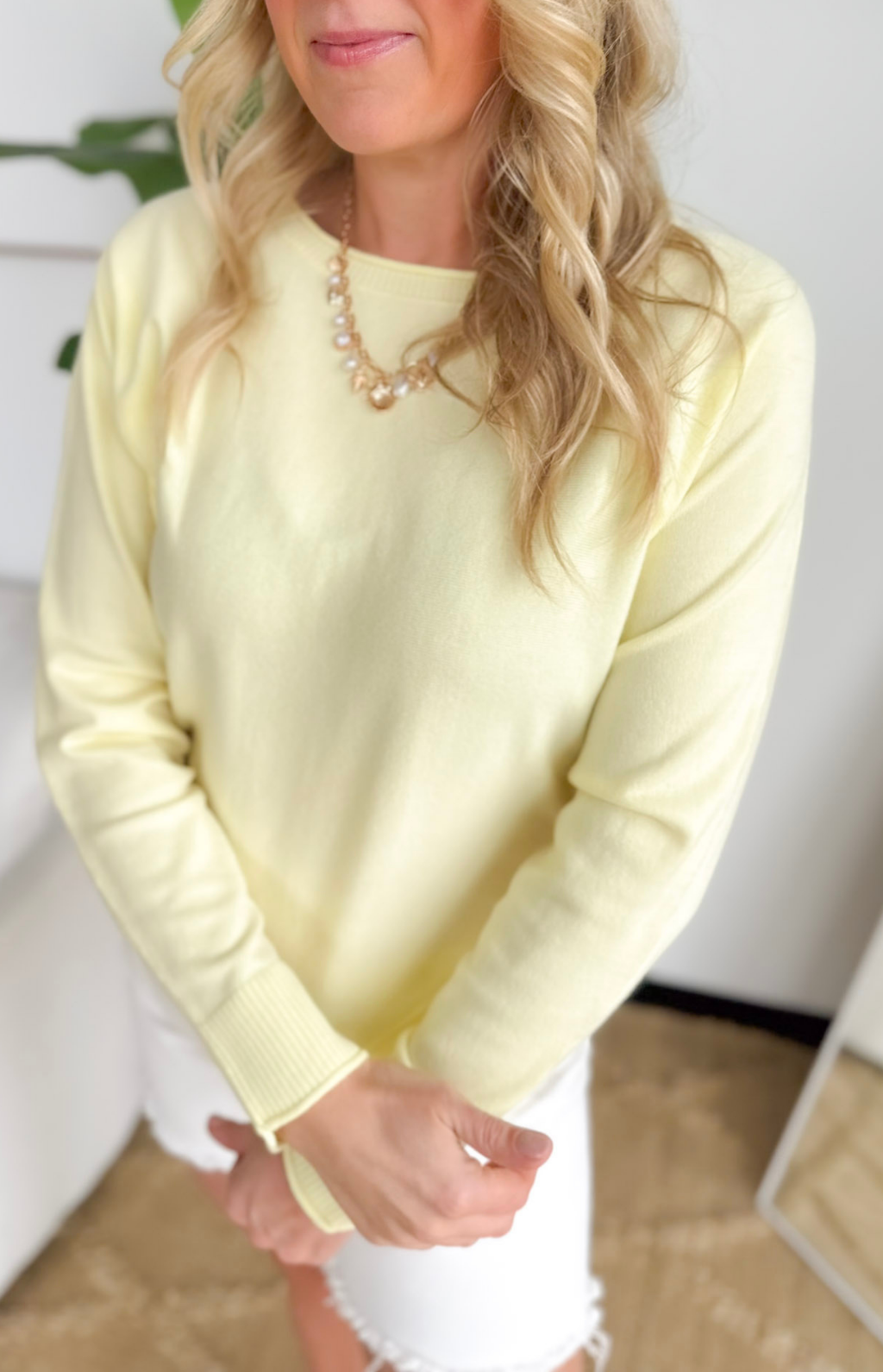 This yellow knit sweater is the kind of bright, happy piece that brings a little sunshine to your wardrobe. Designed with a wide crewneck and long sleeves, it has an easy, relaxed feel that’s still polished enough for everyday wear. The lightweight knit keeps it comfortable through changing seasons, while the ribbed neckline and cuffs add a clean, classic finish.