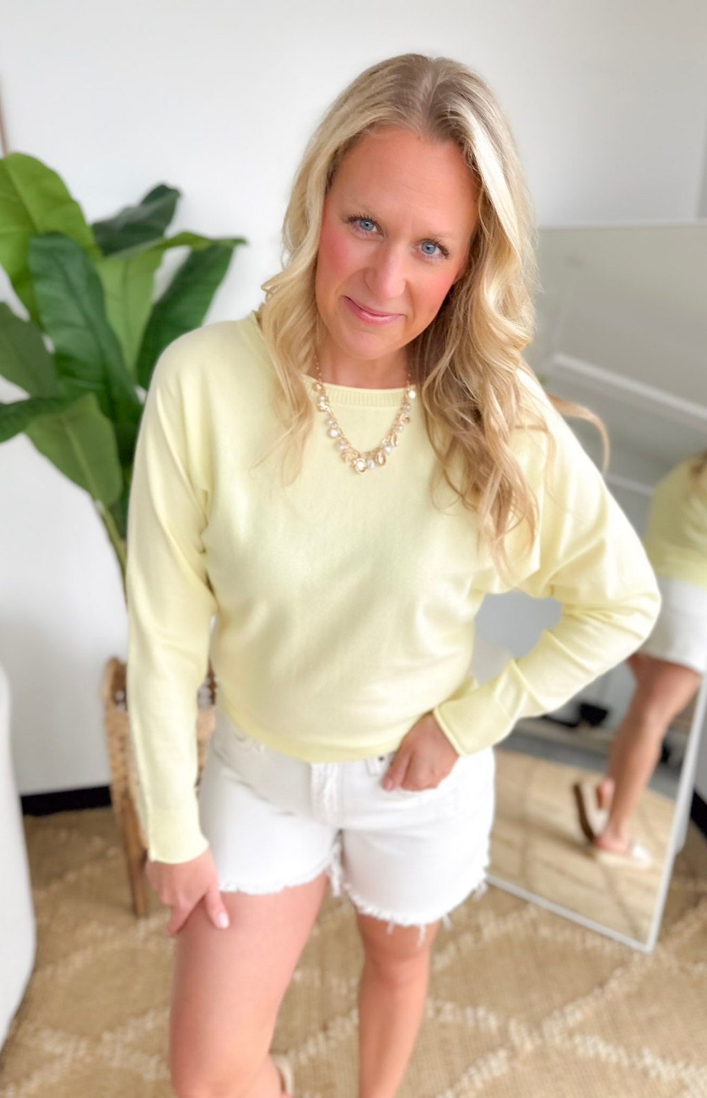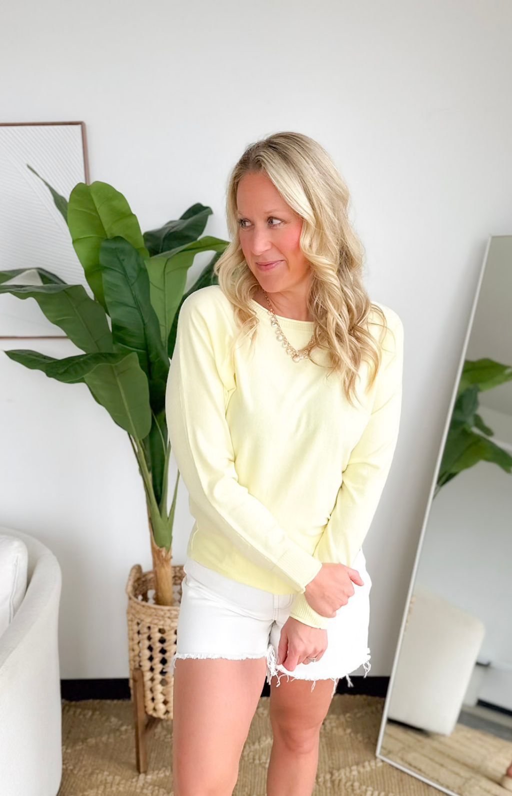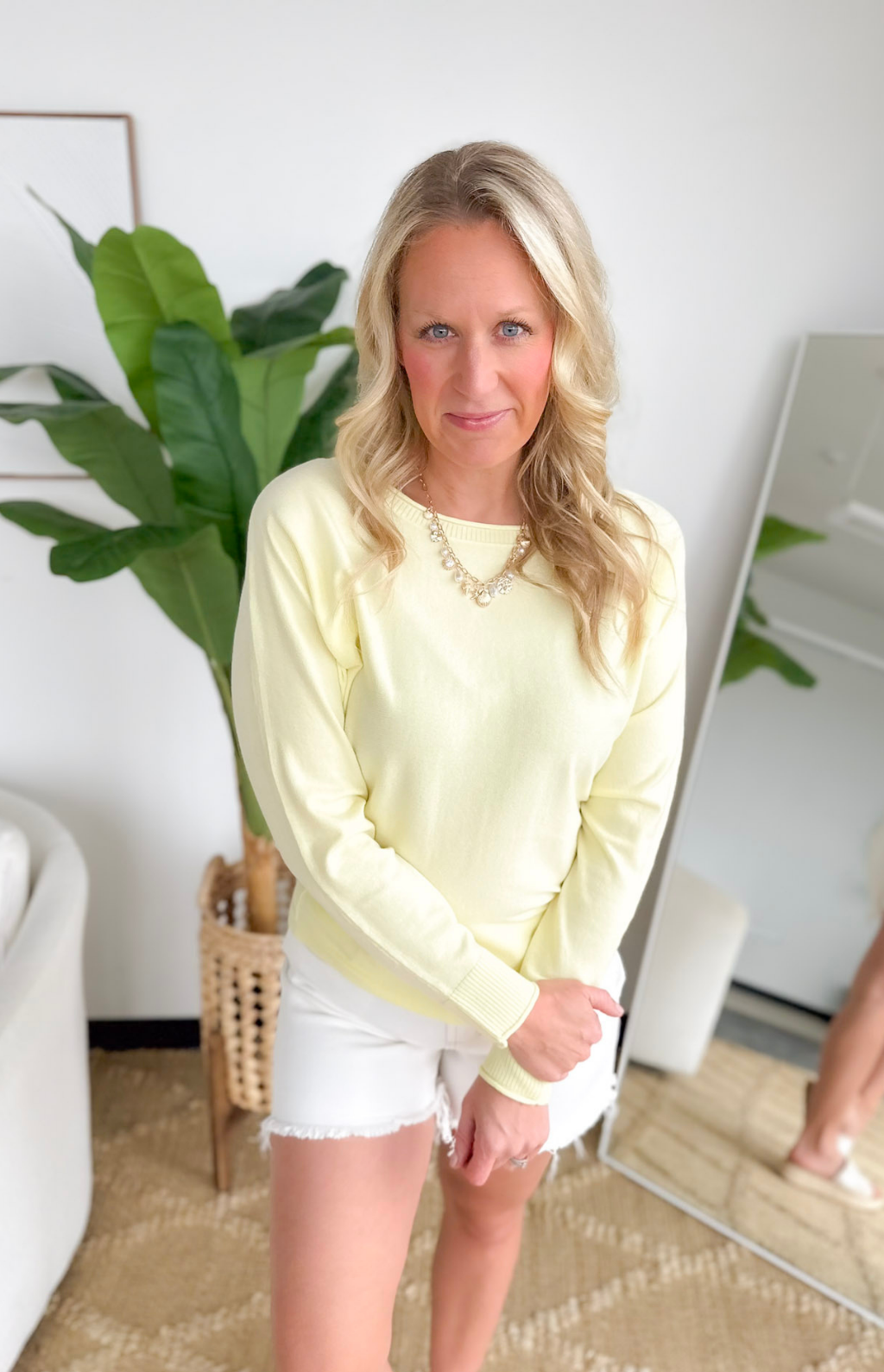It pairs effortlessly with denim, shorts, or skirts for a simple outfit that feels fresh and put together. Cheerful, cozy, and easy to style—this is a sweater you’ll love reaching for again and again.